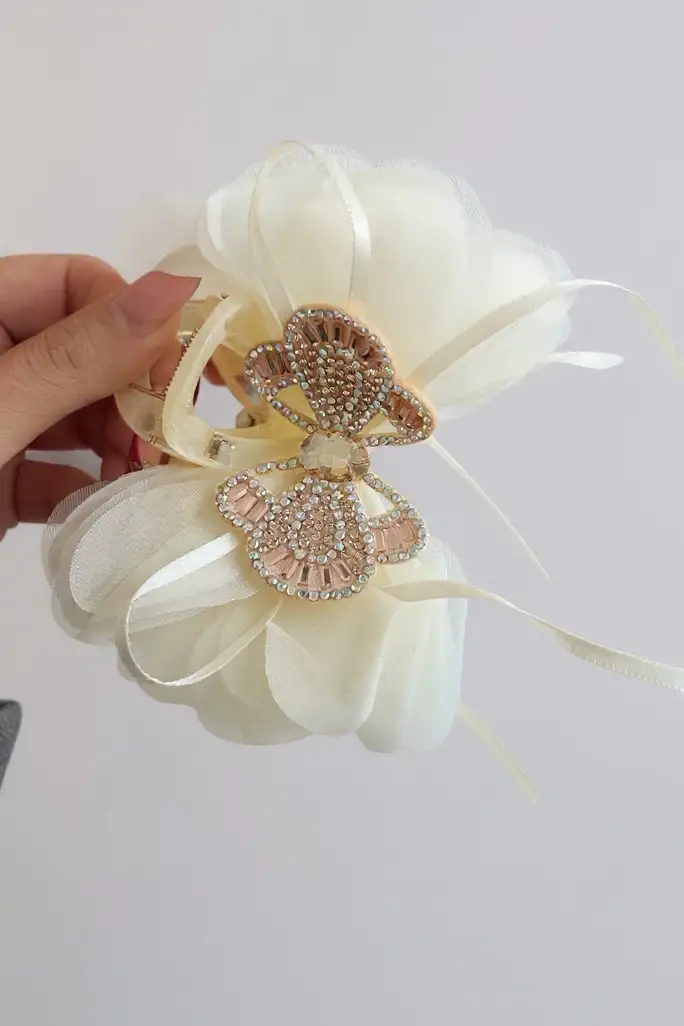 Altın Renk Taş Ve İnci Detaylı Metal Mandal Toka