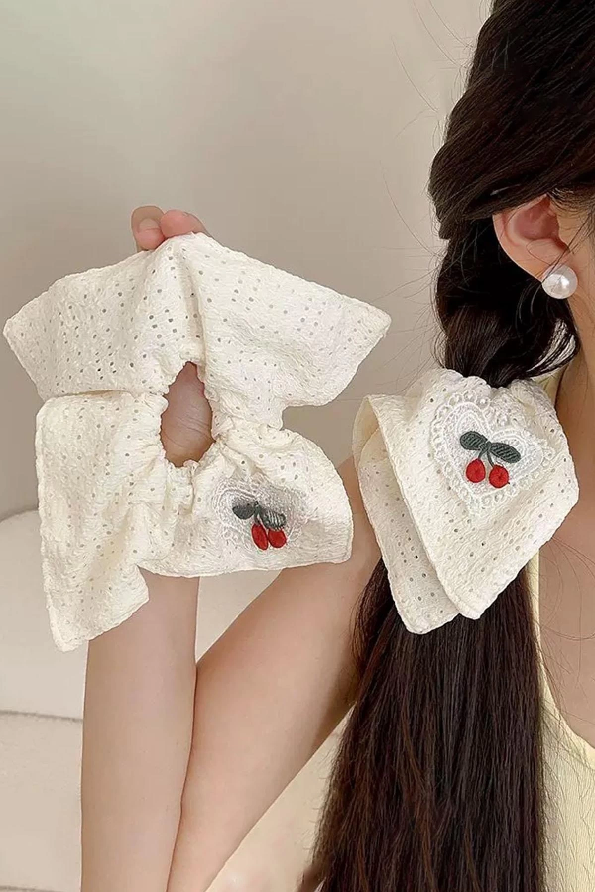 Krem Renk Kiraz Figürlü Simit Toka