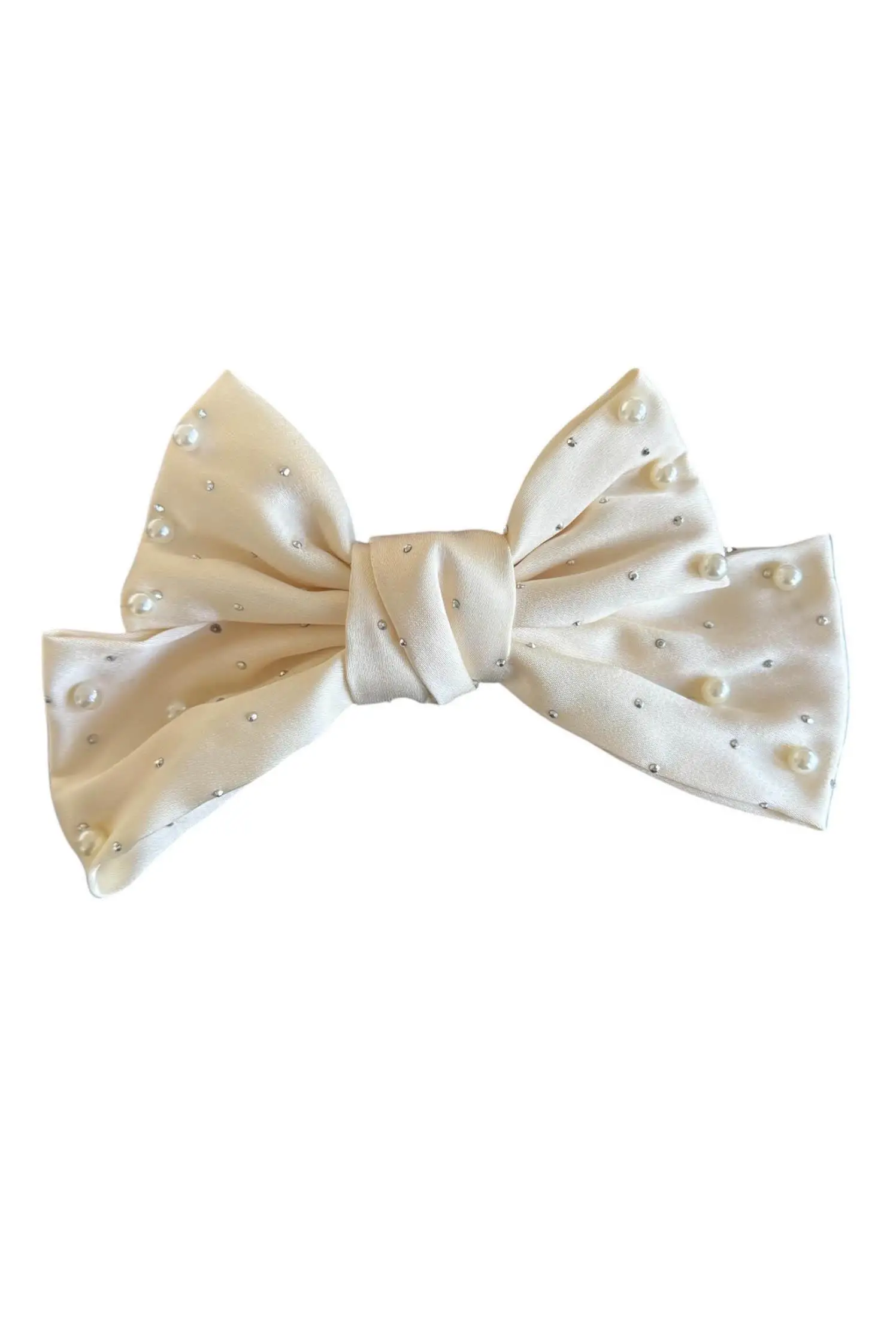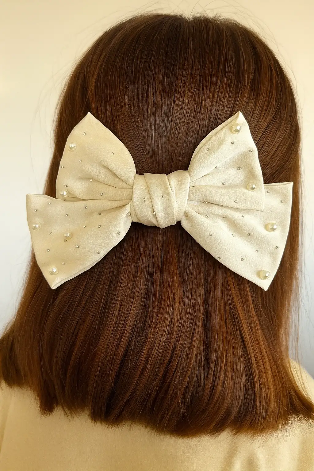 Krem Renk Kurdele Figürlü İnci Ve Taş Detaylı Otomat Toka