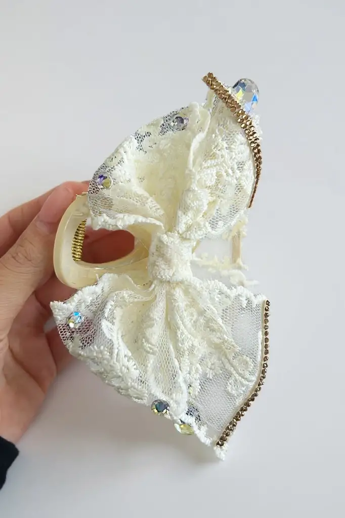 Siyah Renk Taş Detaylı Kurdele Figürlü Mandal Toka