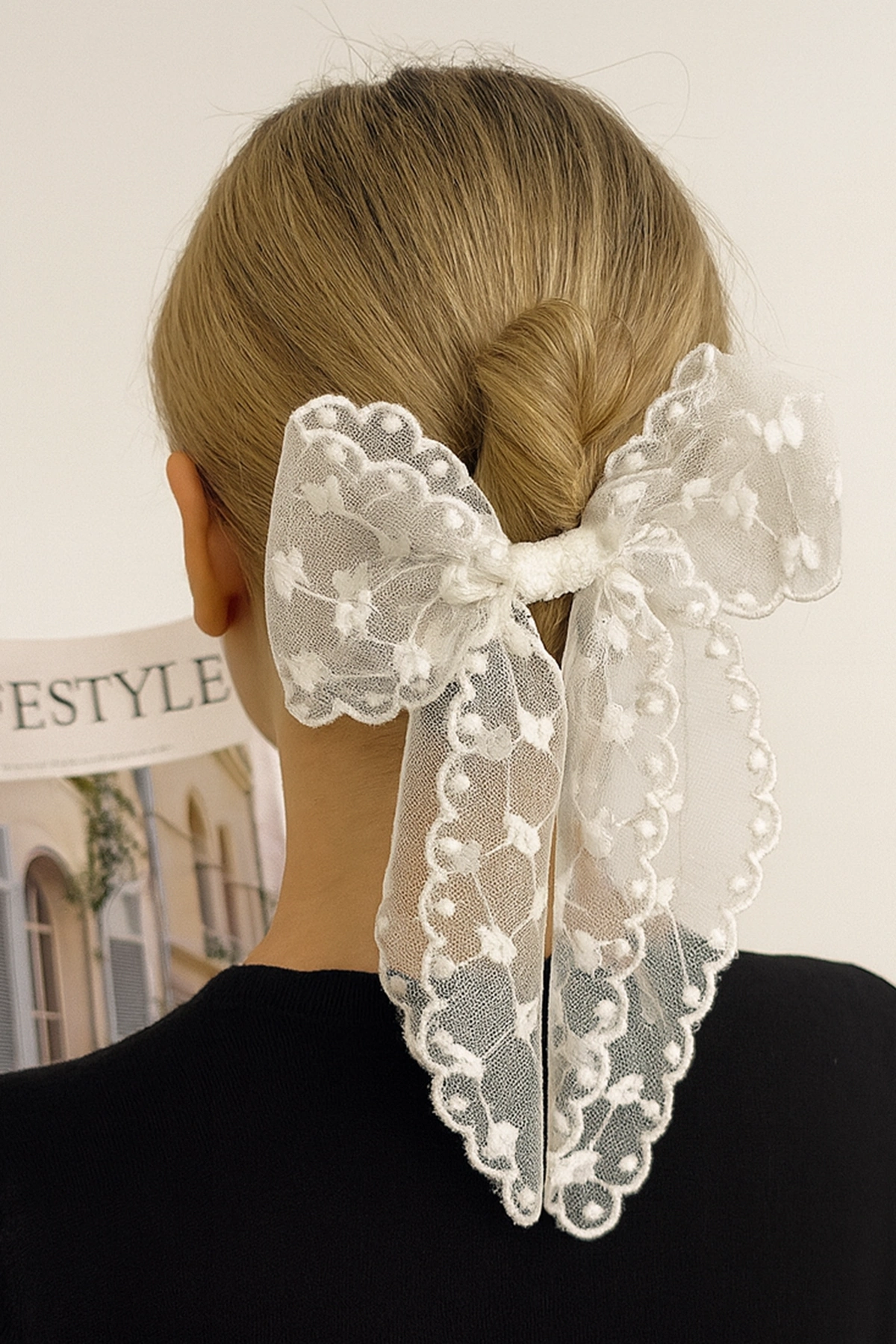 Krem Renk Kurdele Figürlü Otomat Toka
