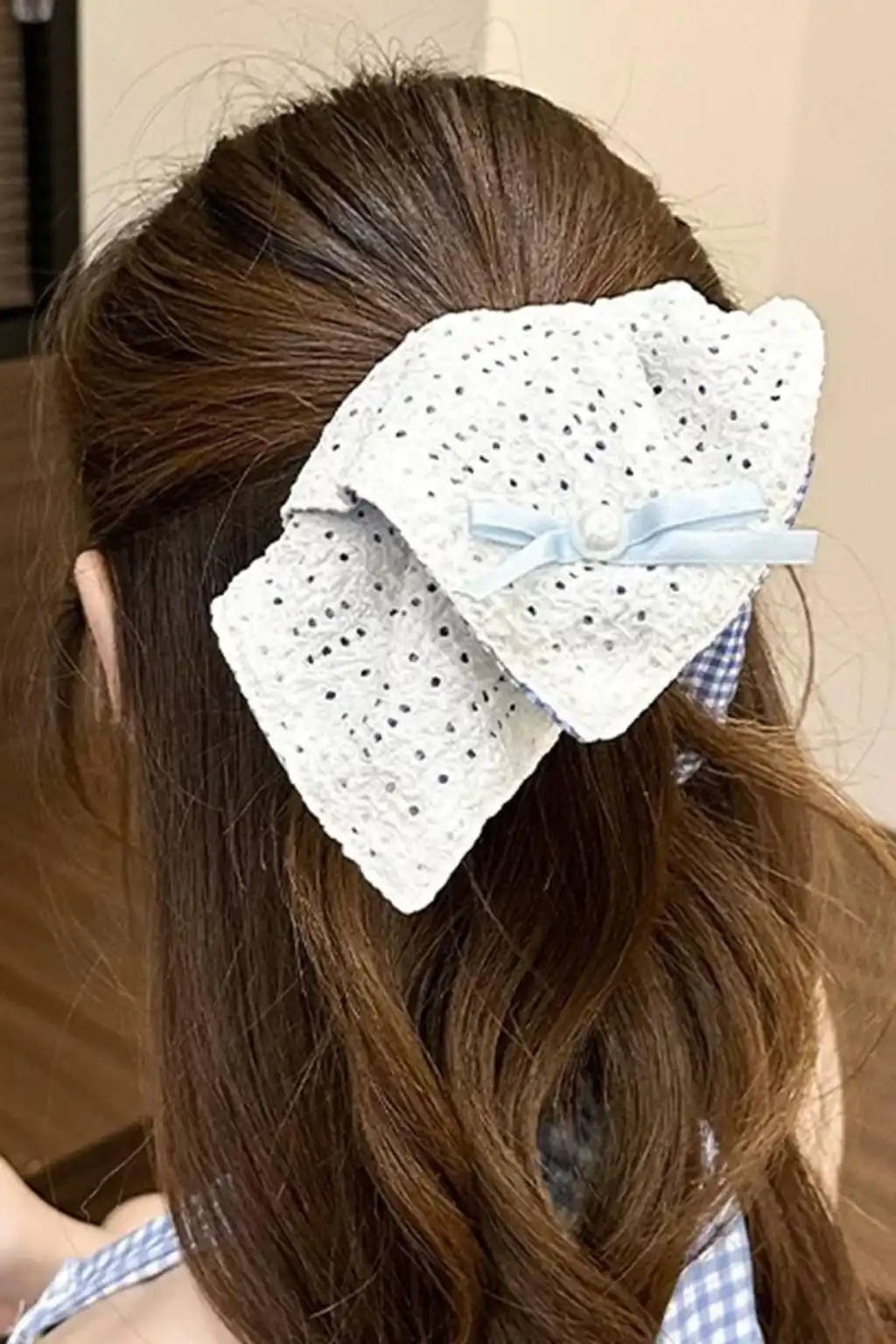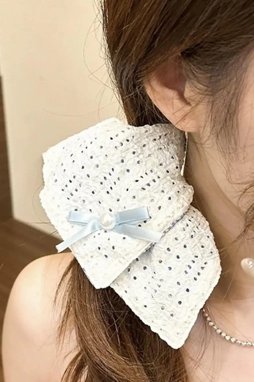 Beyaz Renk Kurdele Ve Puantiye Figürlü Simit Toka