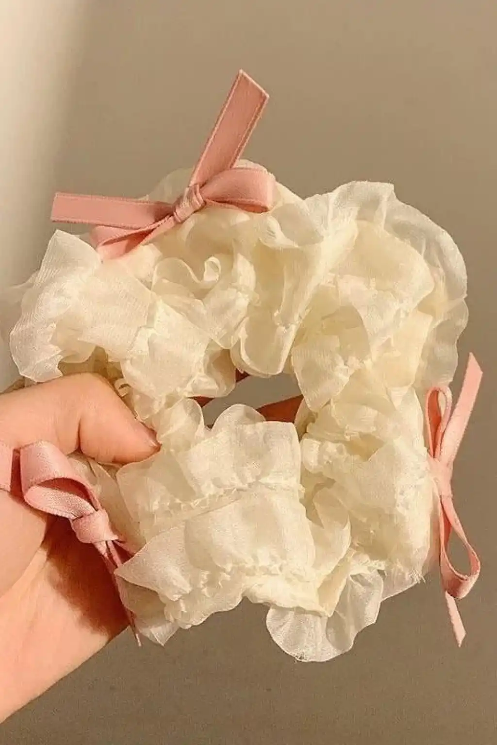 Beyaz Renk Kurdele Ve Puantiye Figürlü Simit Toka