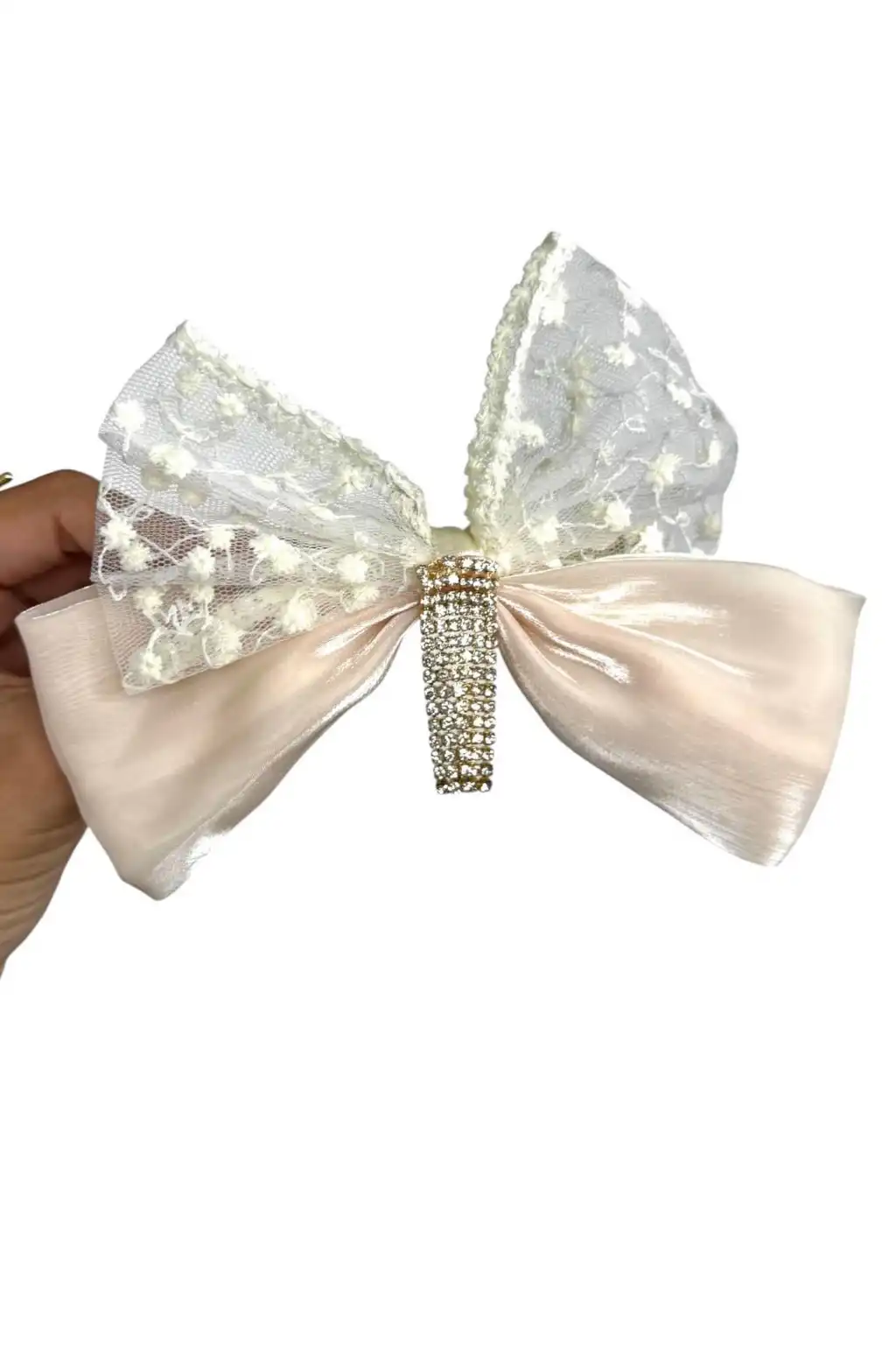 Beyaz Renk Kurdele Figürlü Taş Detaylı Otomat Toka