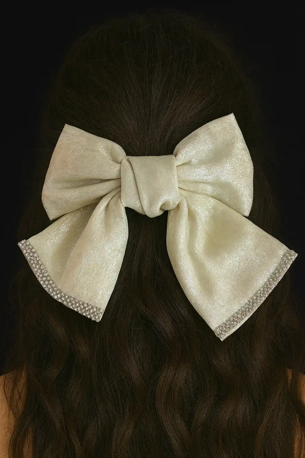 Beyaz Renk Kurdele Figürlü Taş Detaylı Otomat Toka