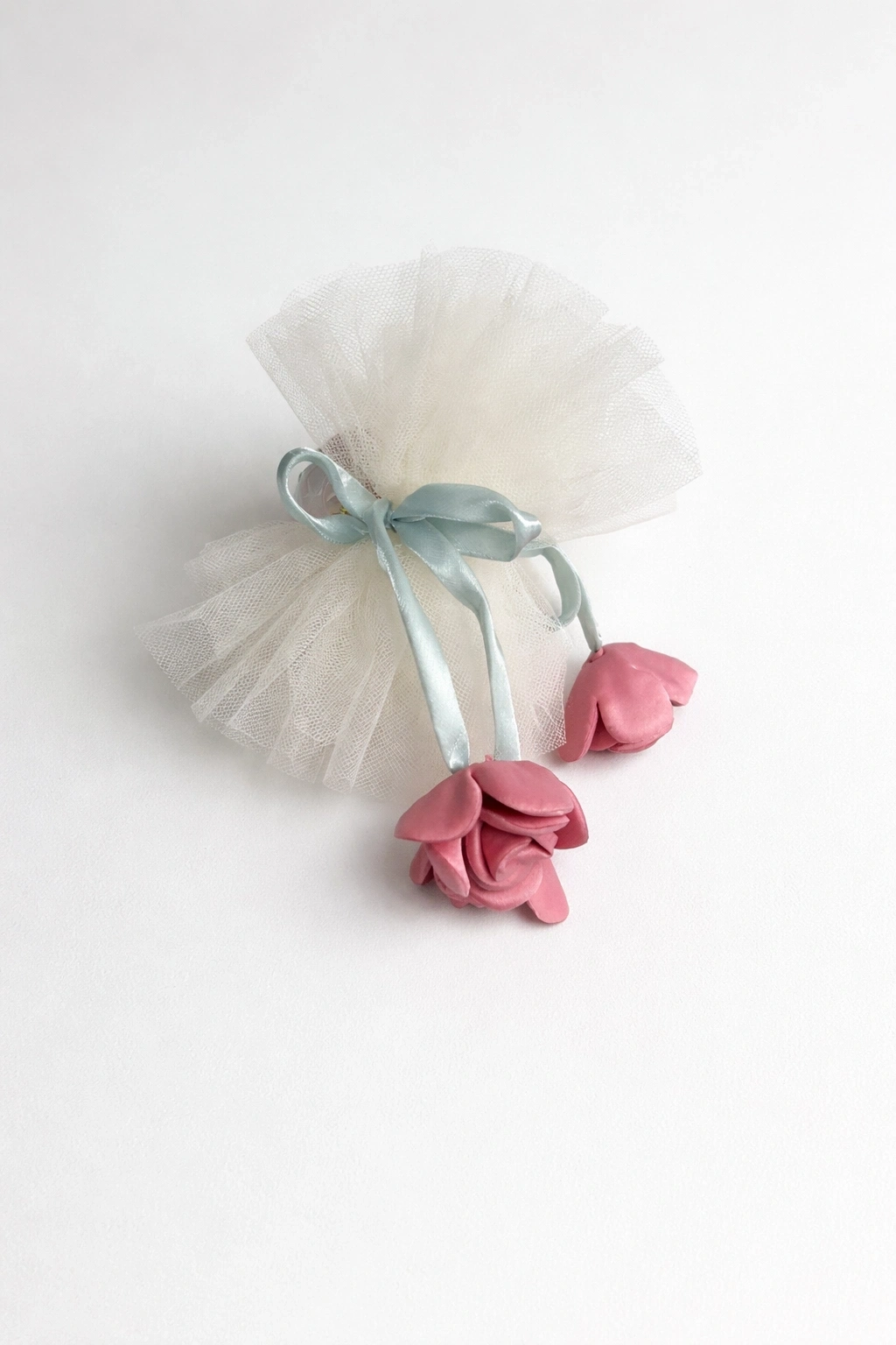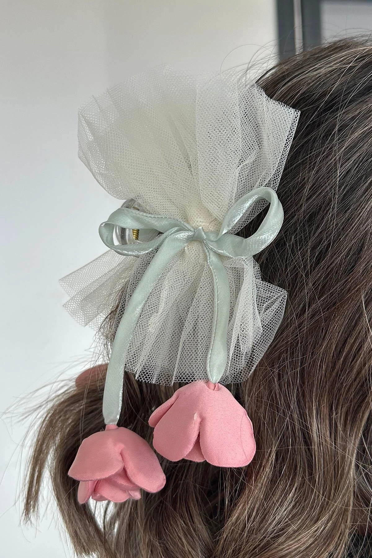 Krem Renk Lale Figürlü Tül Detaylı Mandal Toka