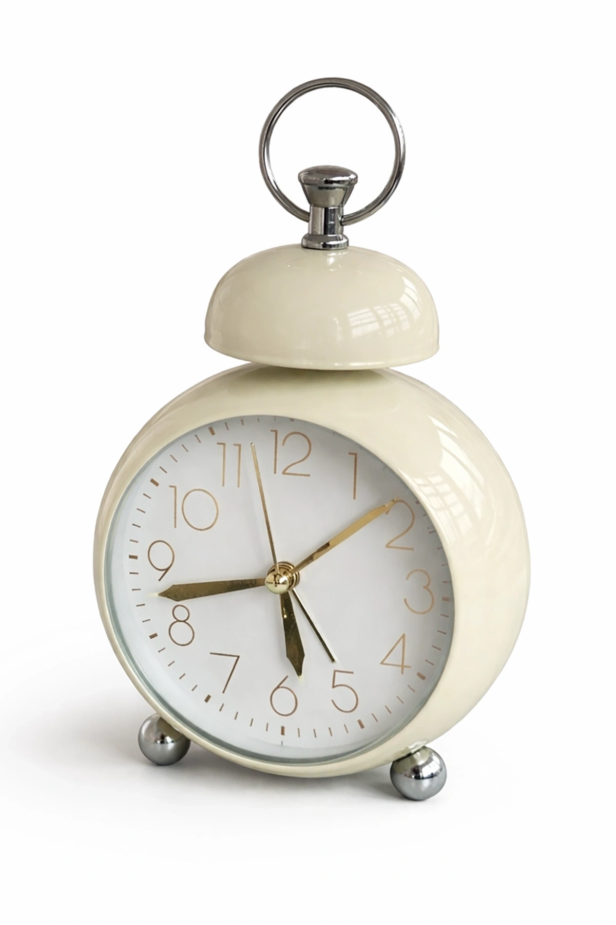 Krem Renk Mini Dekoratif Işıklı Alarmlı Yuvarlak Masa Saati