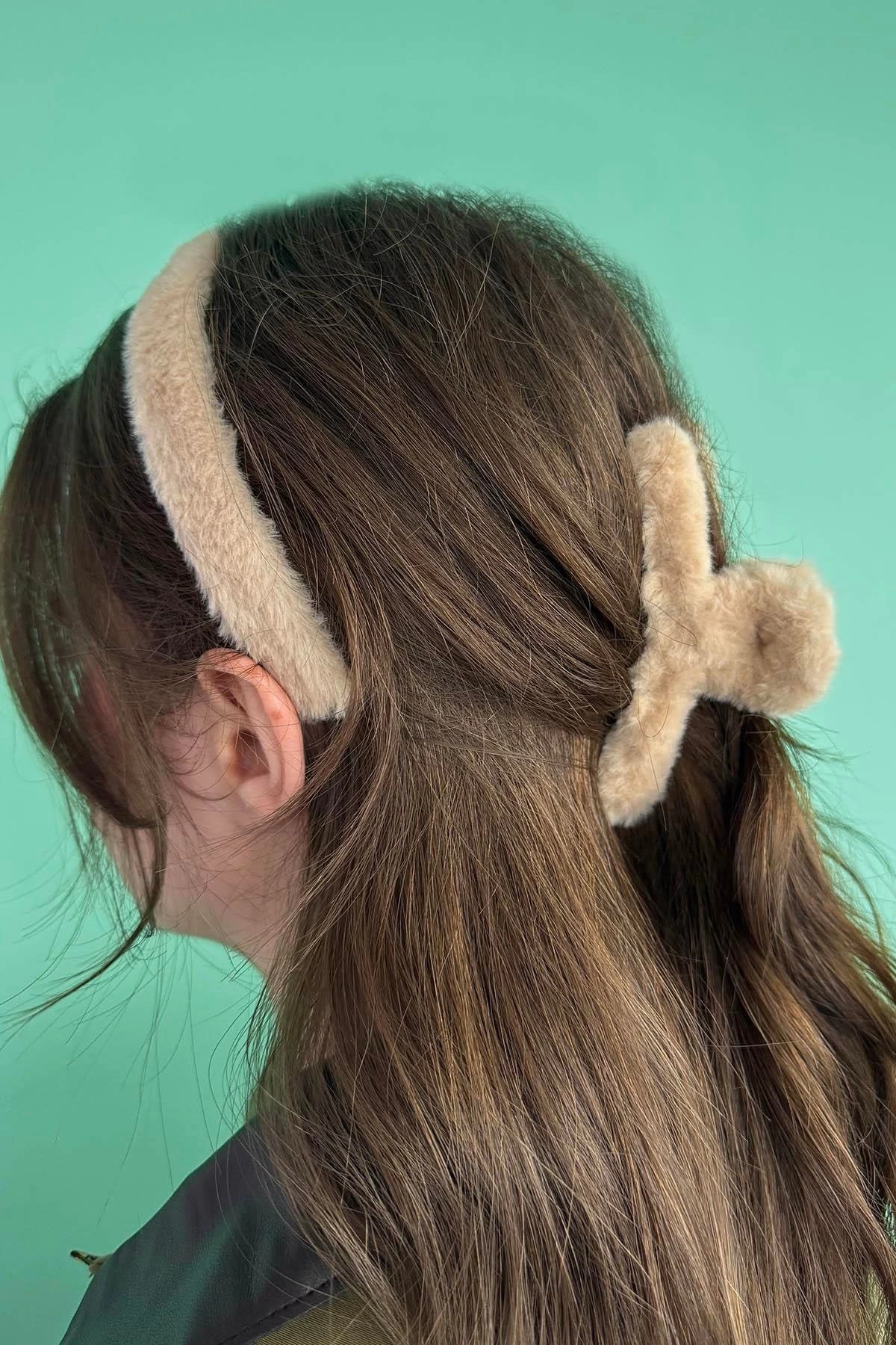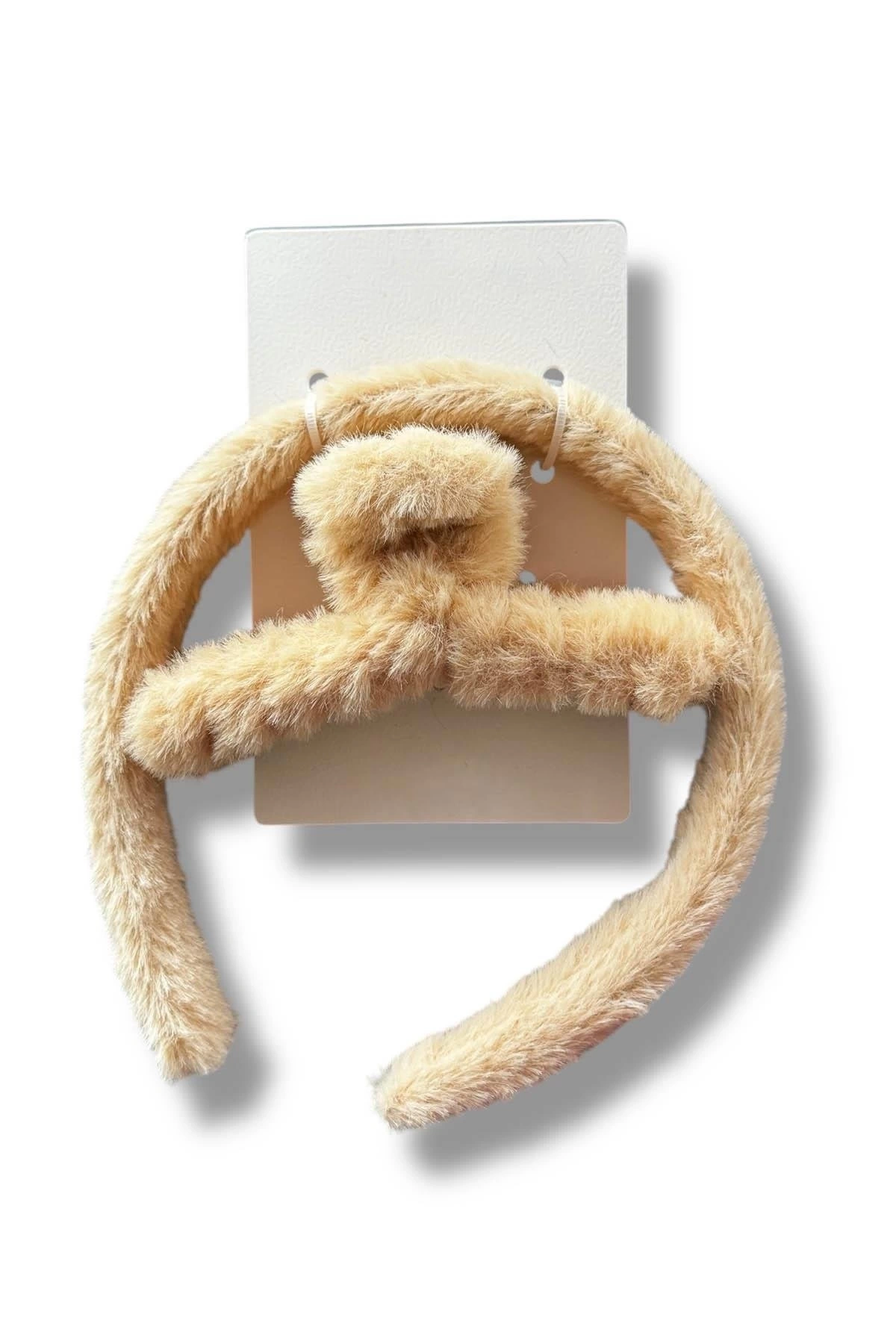 Krem Renk Peluş Mandal Toka Ve Taç Set