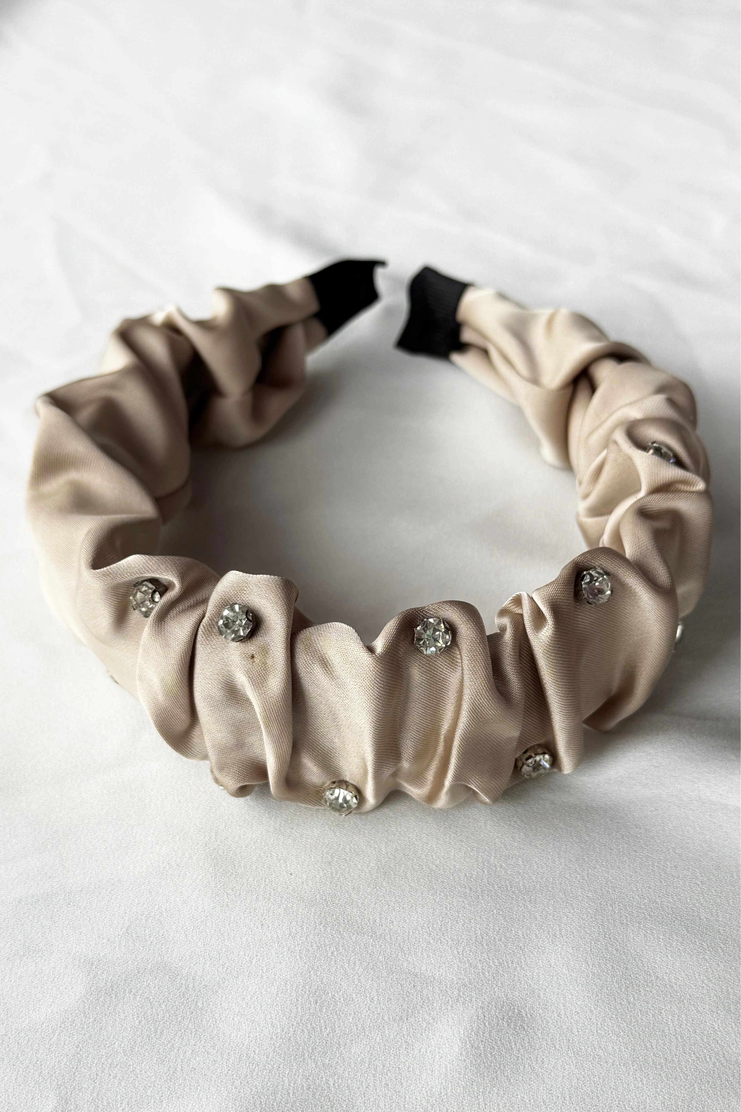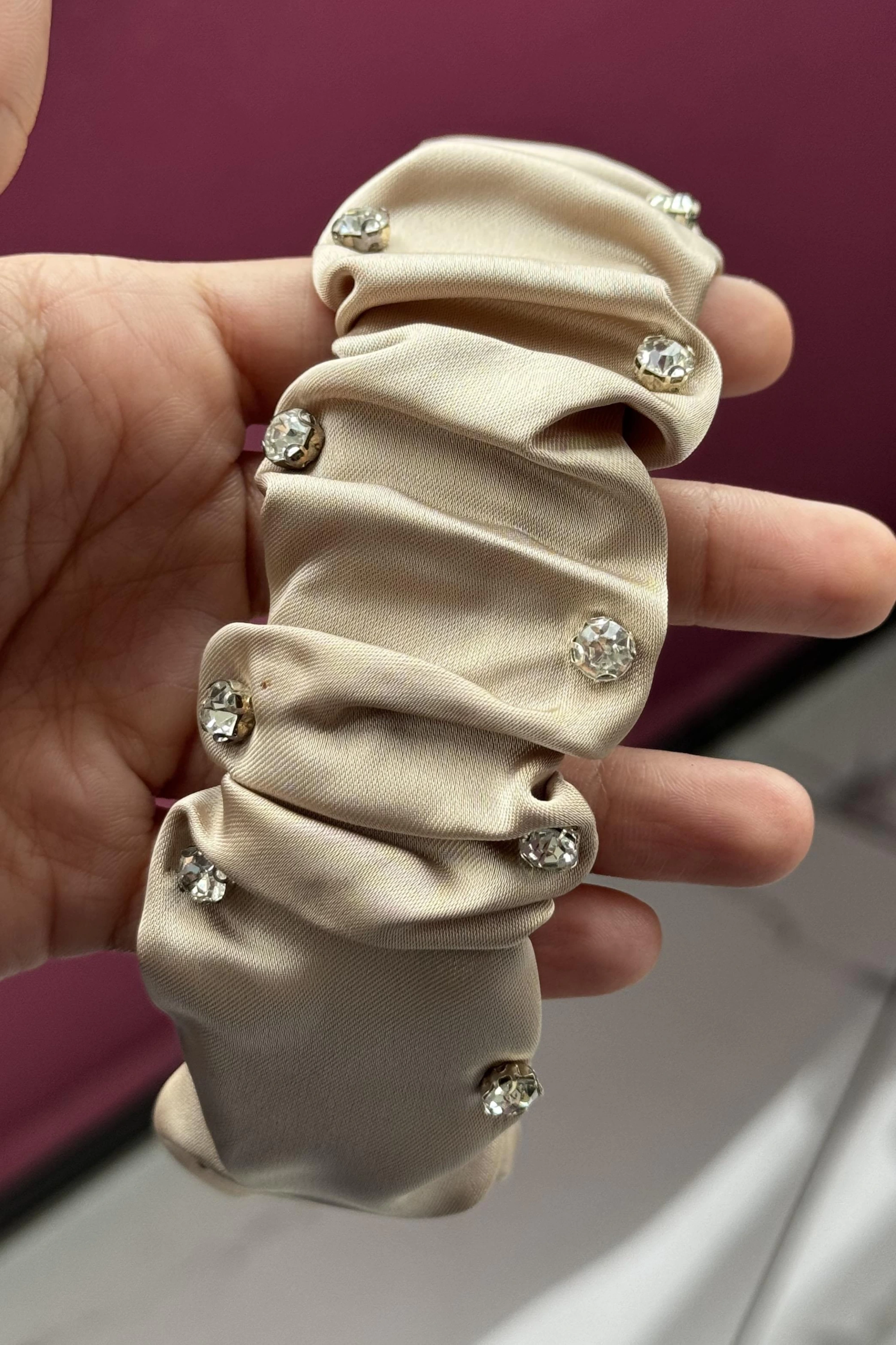 Krem Renk Taş Detaylı Saten Taç