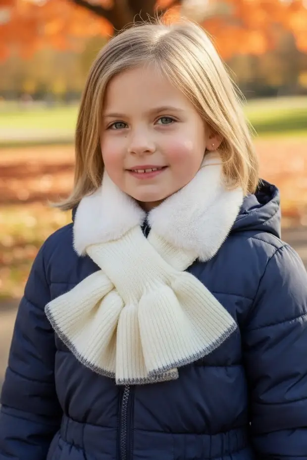 Krem Ve Gri Renk Çocuk Peluş Atkı