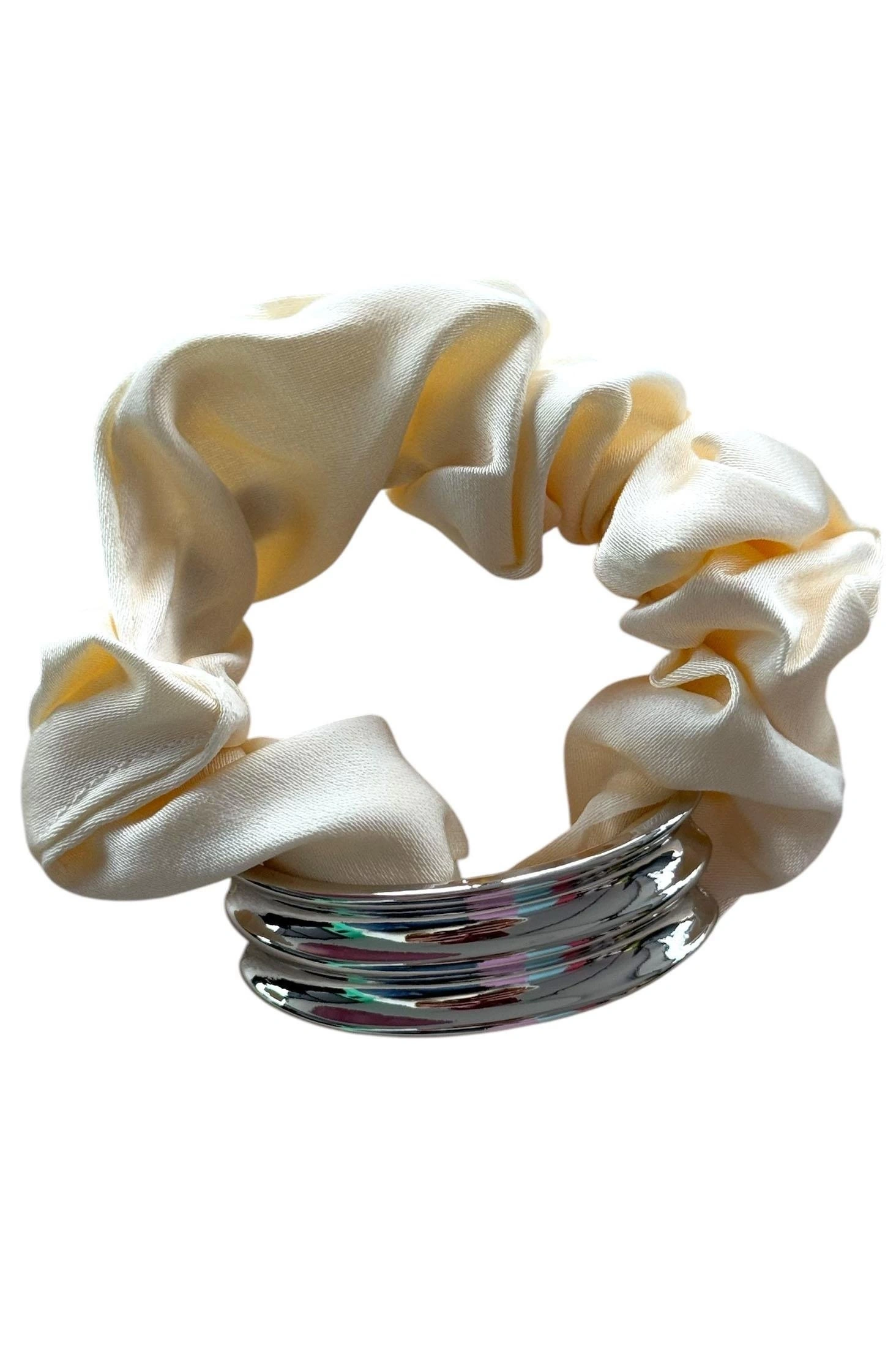 Krem Ve Gümüş Renk Metal Detaylı Simit Toka