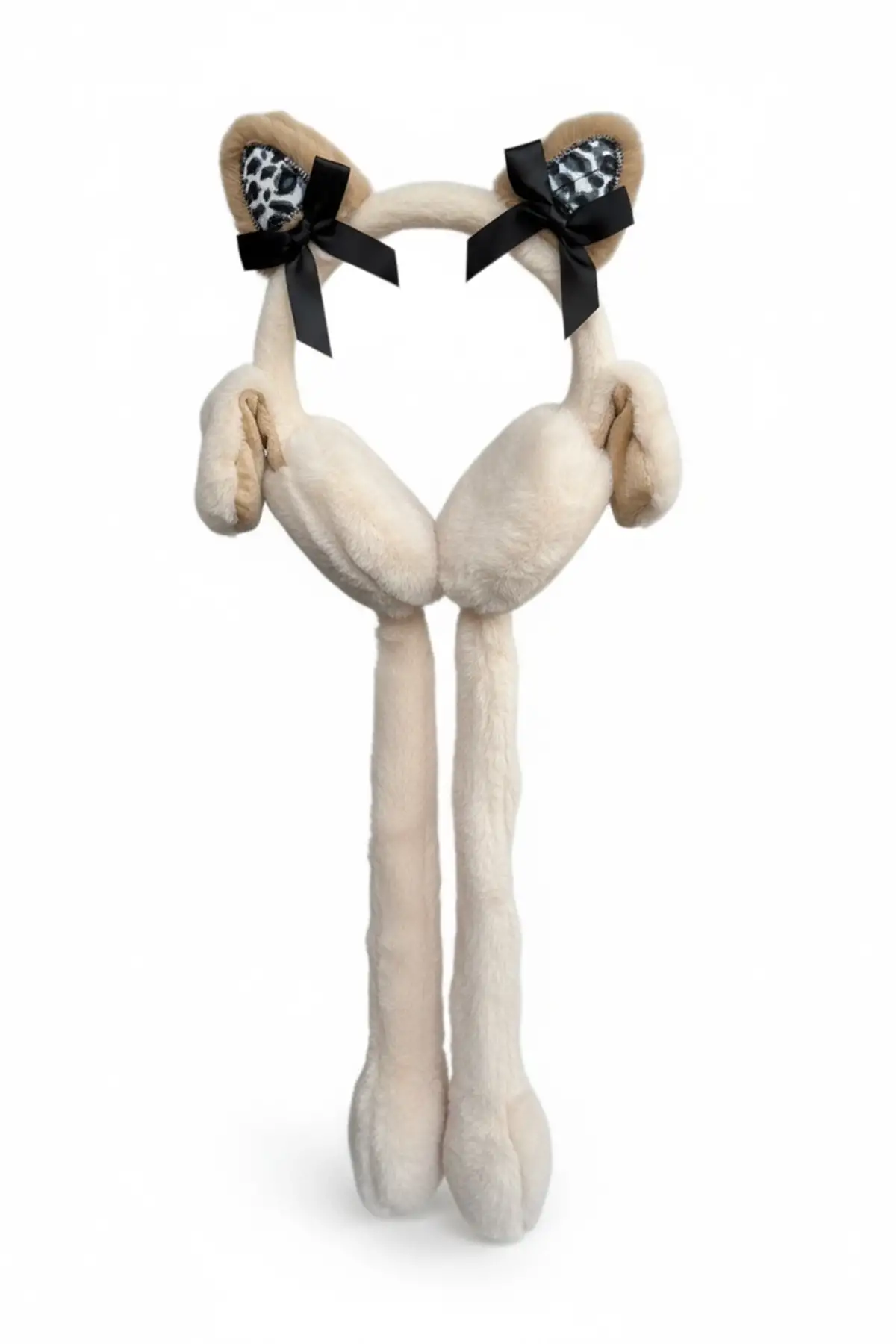 Krem Ve Kahve Renk Kulak Detaylı Peluş Kulaklık