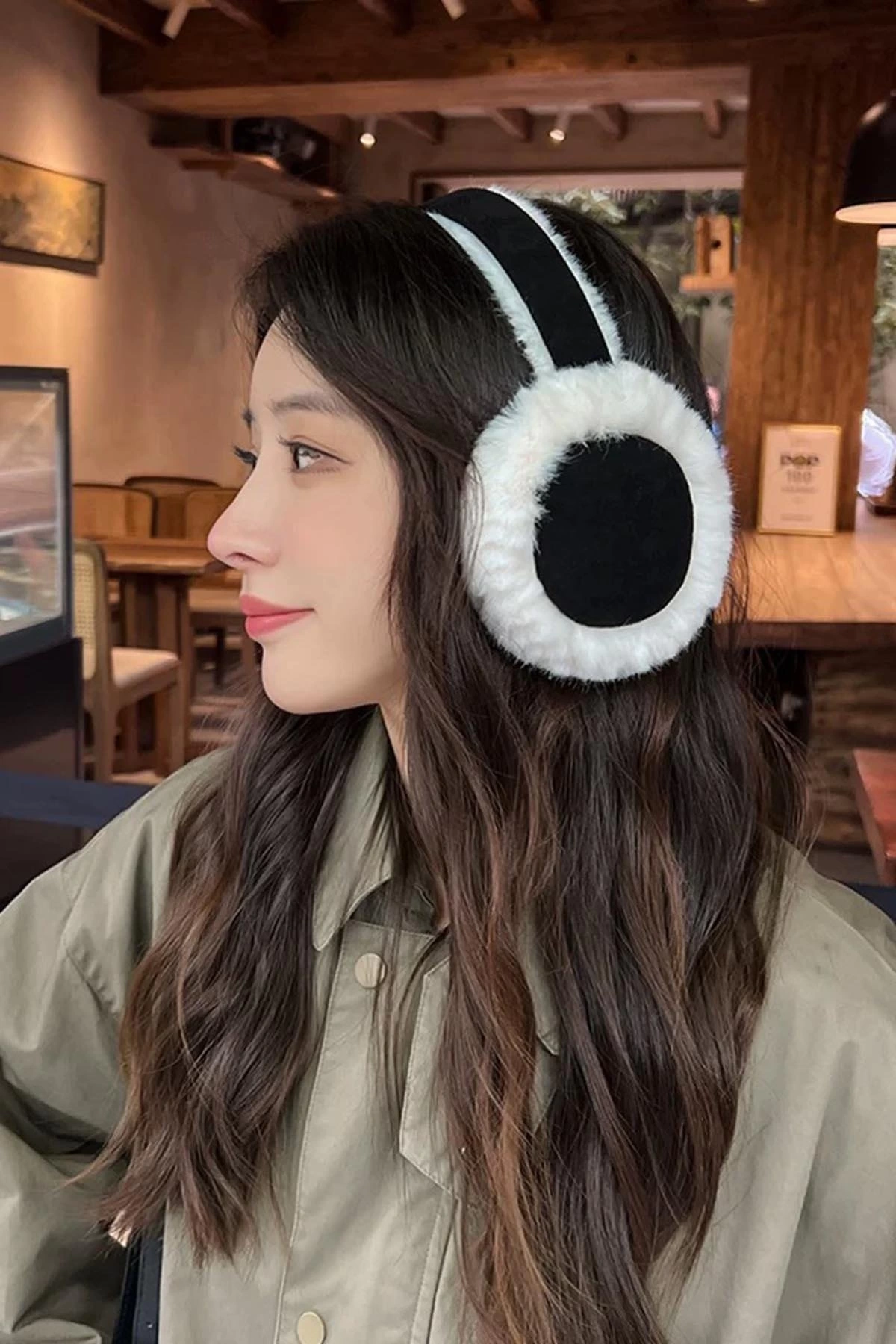 Krem Ve Siyah Renk Peluş Kulaklık
