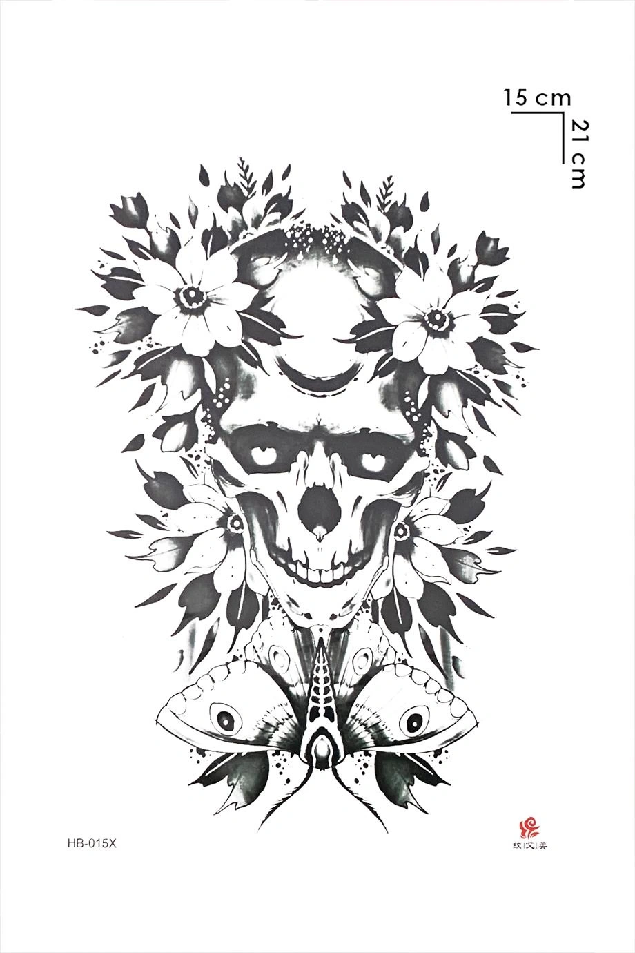 Kurukafa ve Çiçek Modelli Geçici Dövme Tattoo