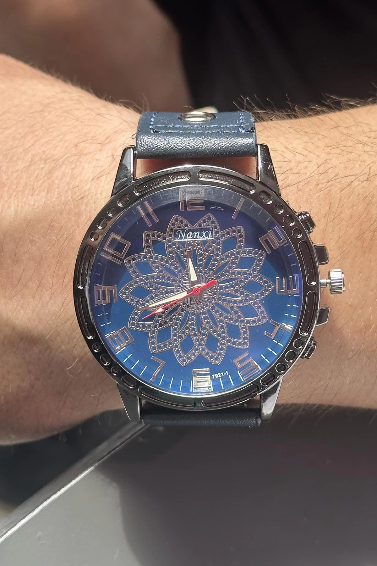 Lacivert Renk Deri Kordonlu Çelik Erkek Saat