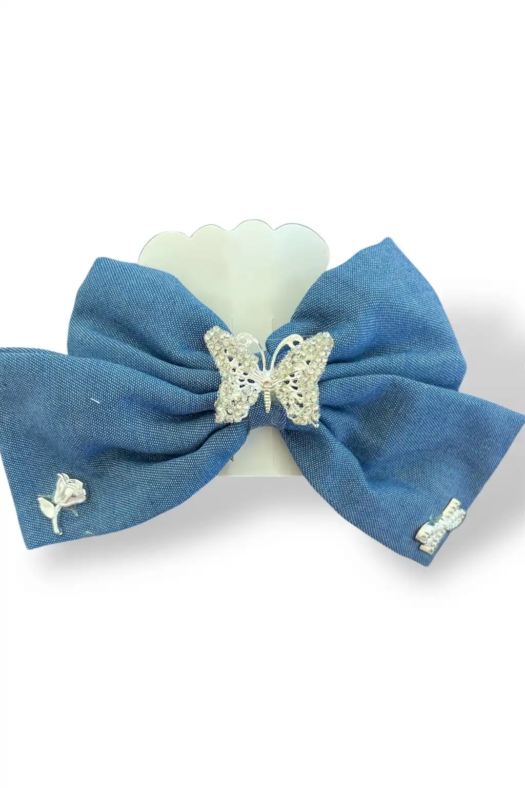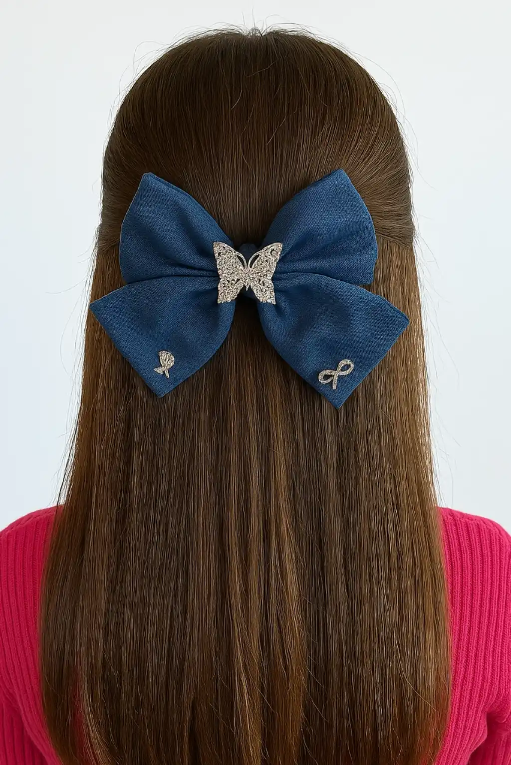 Lacivert Renk Kelebek Figürlü Kurdele Otomat Toka