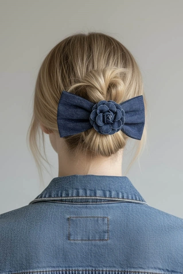 Lacivert Renk Kurdele Figürlü Çiçek Detaylı Otomat Toka