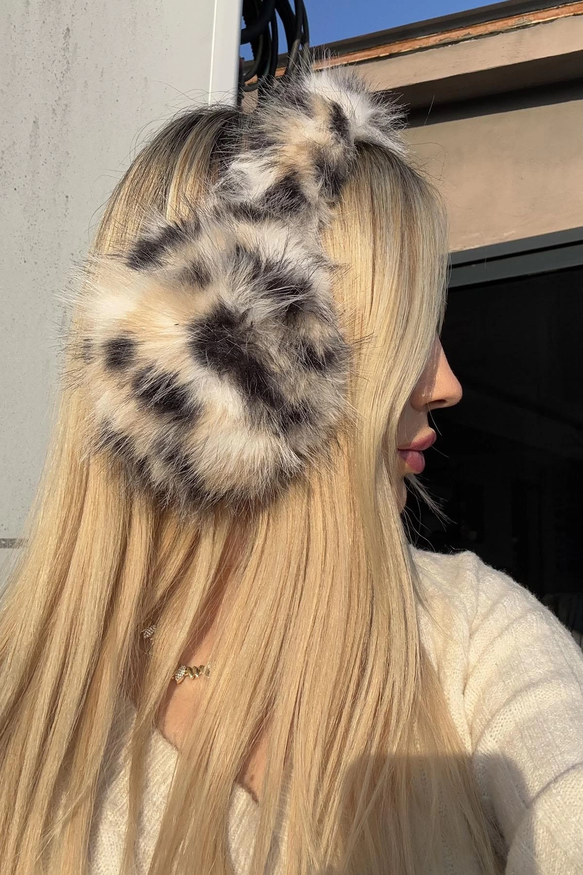 Leopar Desenli Peluş Kulaklık