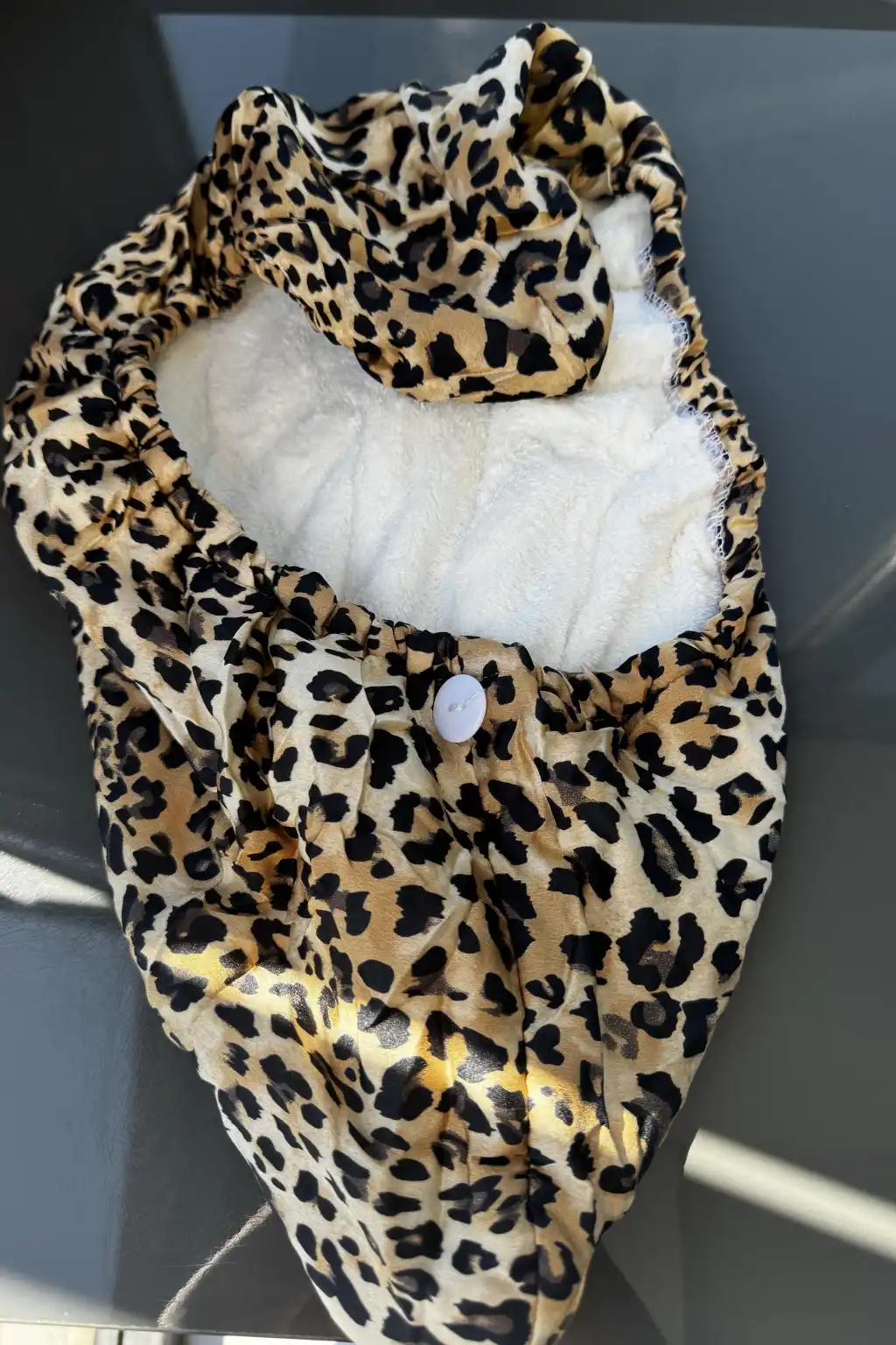 Leopar Desenli Saç Havlusu/Bonesi Lastikli