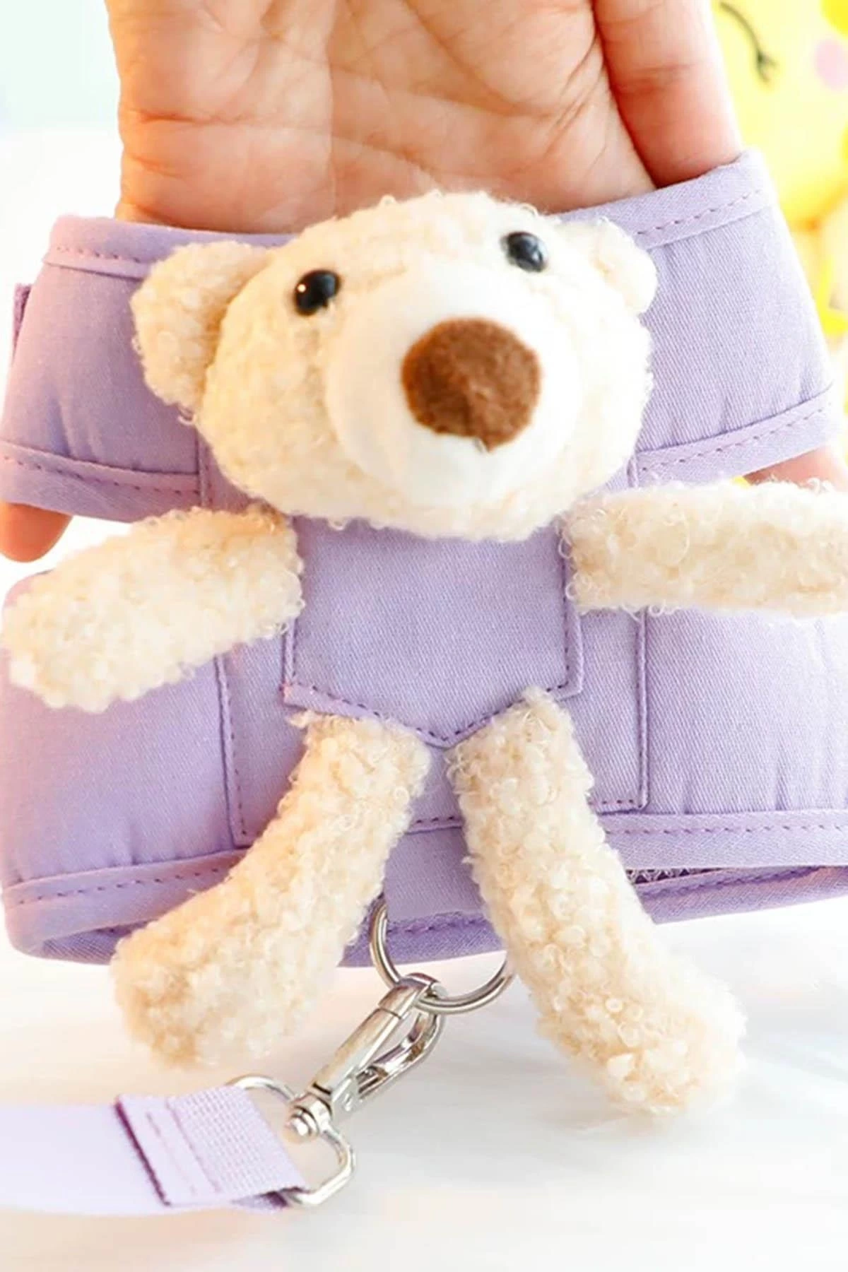 Lila Renk Ayıcık Figürlü L Beden Göğüs Kedi/Köpek Tasma