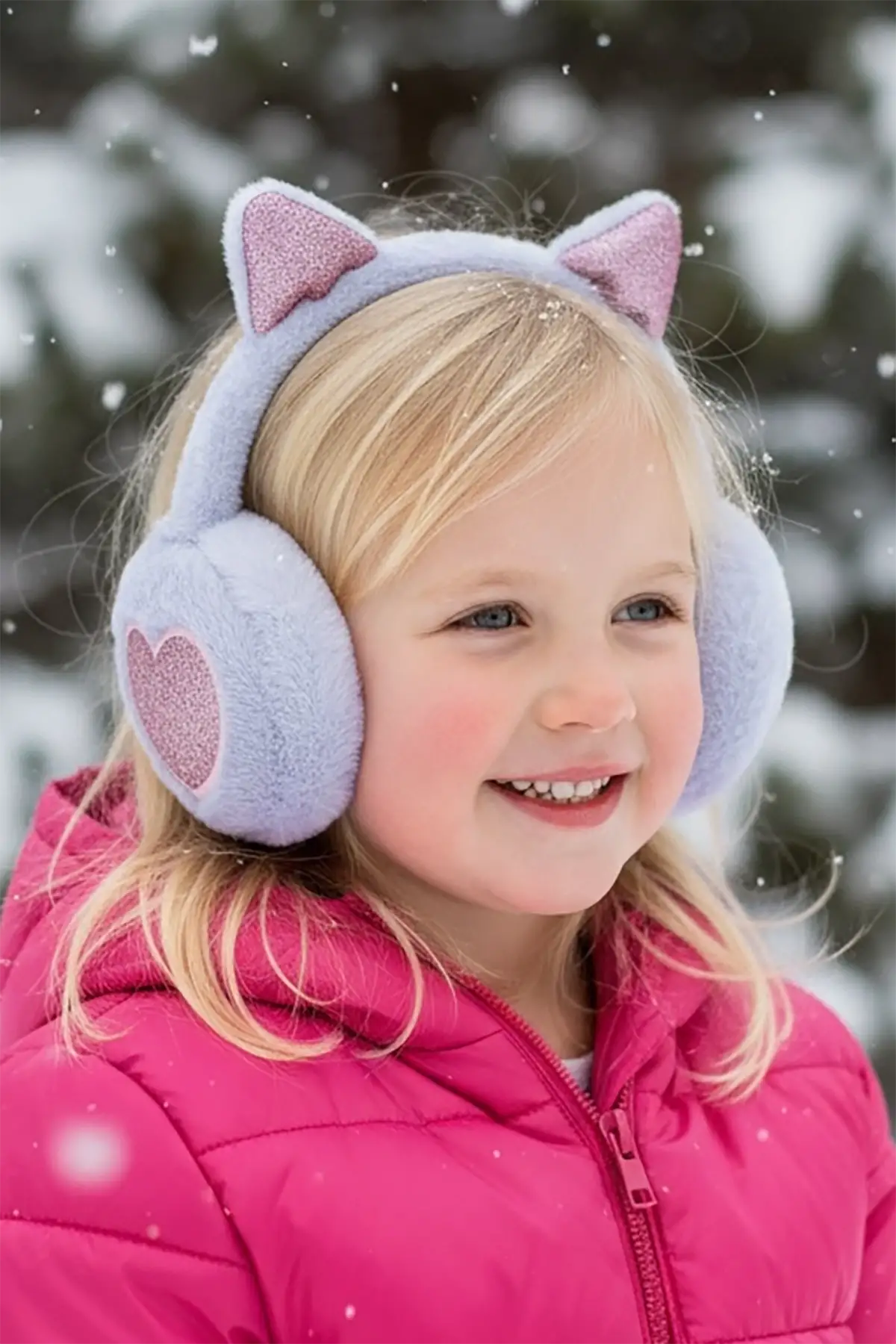 Lila Renk Kalp Figürlü Kulaklı Çocuk Peluş Kulaklık