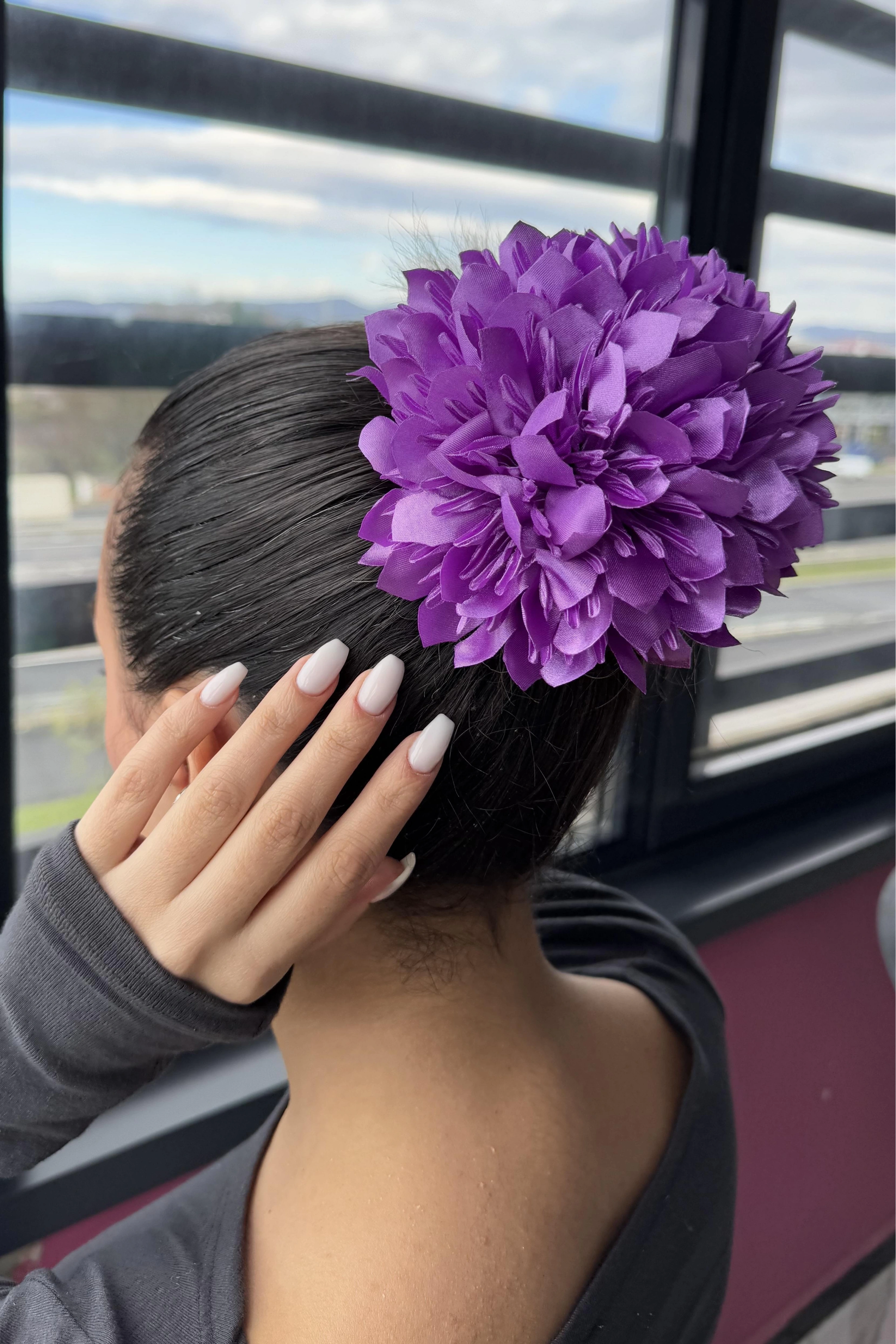 Lila Renk Kasımpatı Çiçeği Detaylı Mandal Toka