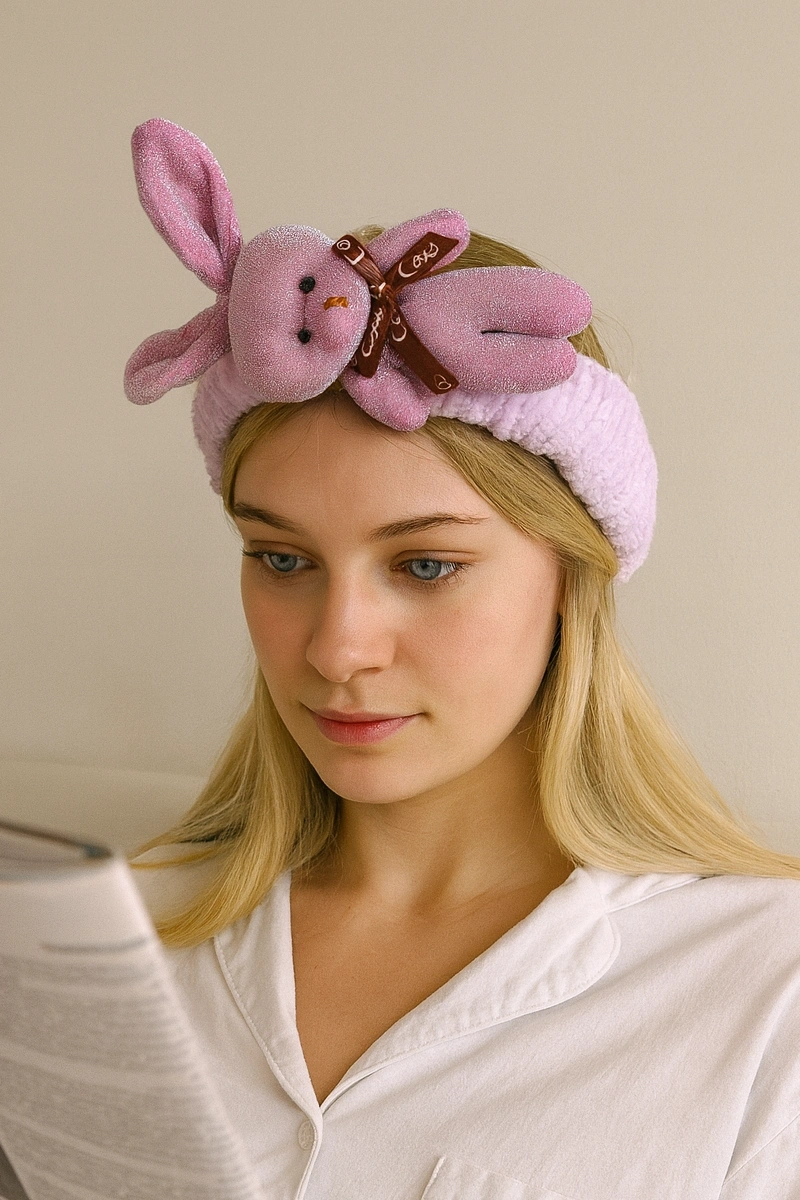 Lila Renk Tavşan Figürlü Peluş Saç Bandı