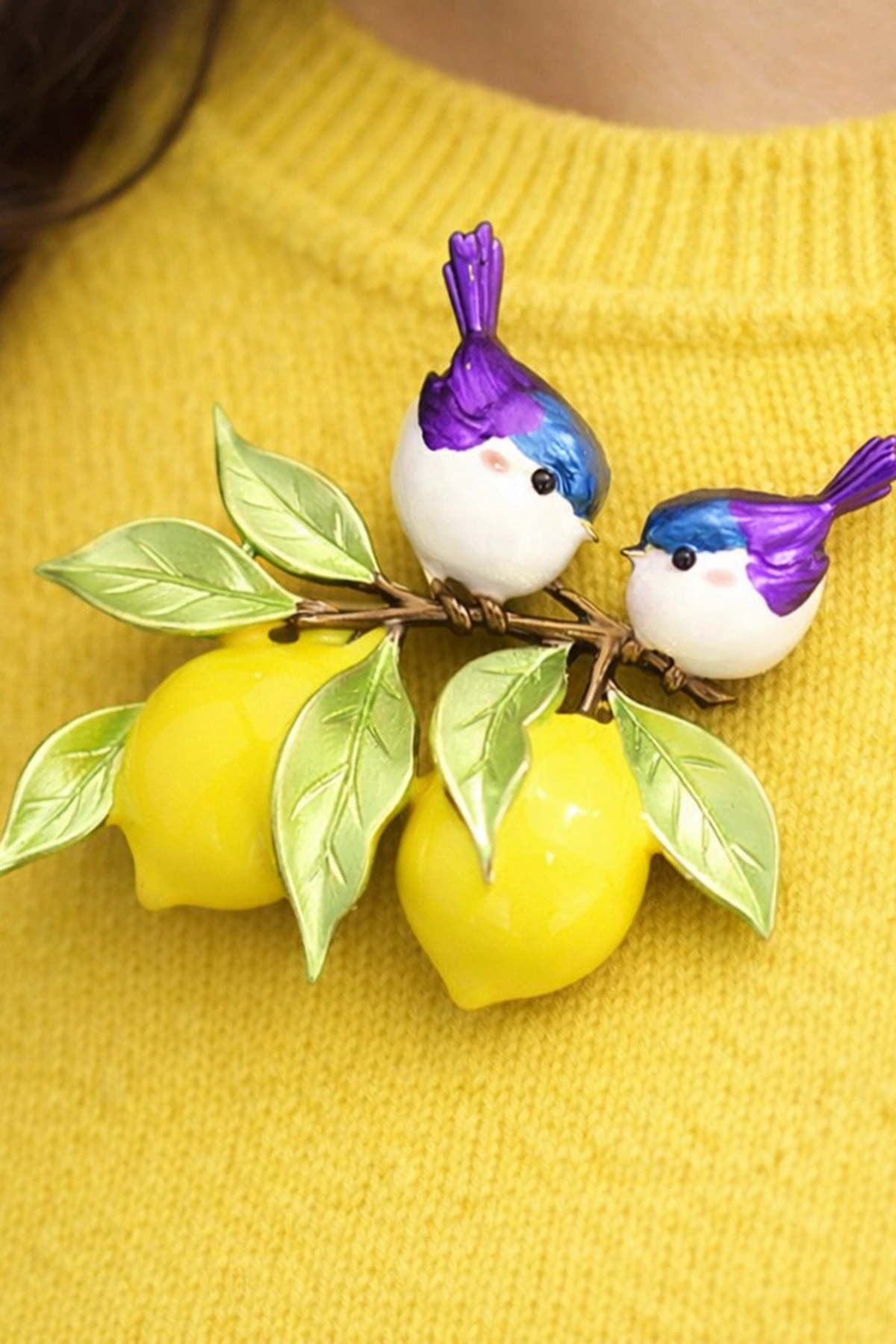 Limon Ve Kuş Figürlü Broş