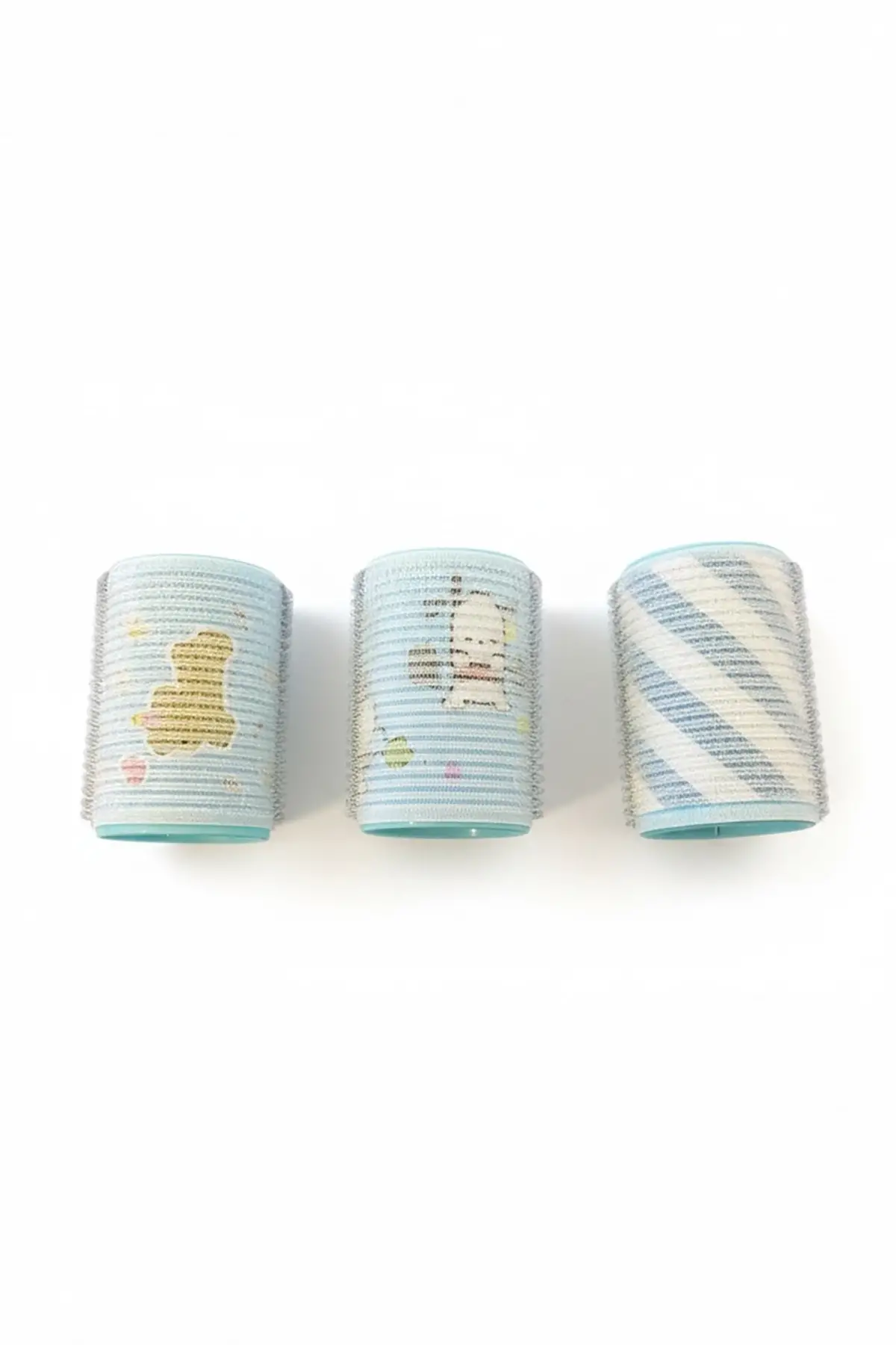 Mavi Renk 6 Adet Bigudi Cırtlı/ Yapışkanlı Saç Bigudisi /Orta Boy