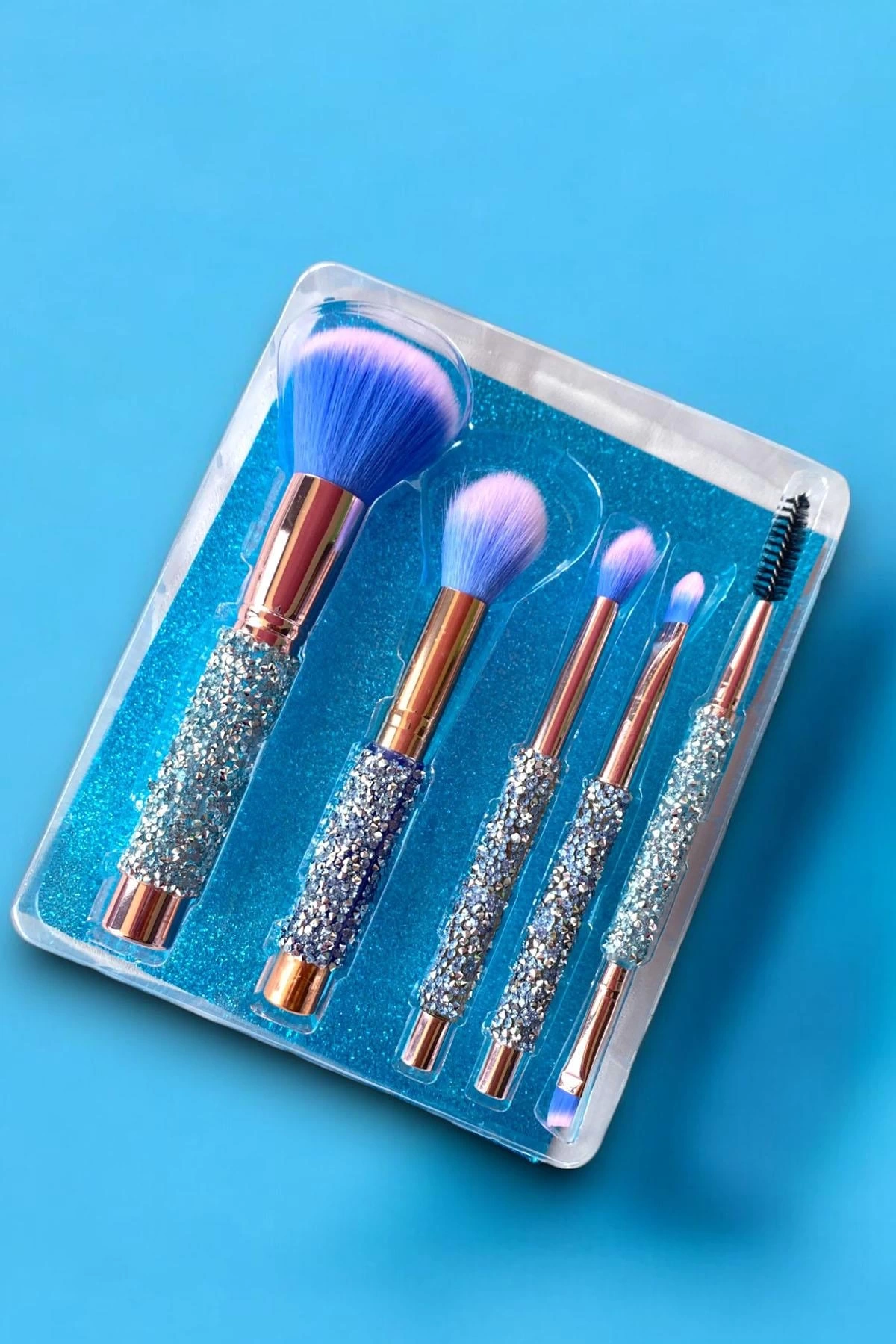 Mavi Renk 5'li Sim Detaylı Makyaj Fırçası Seti