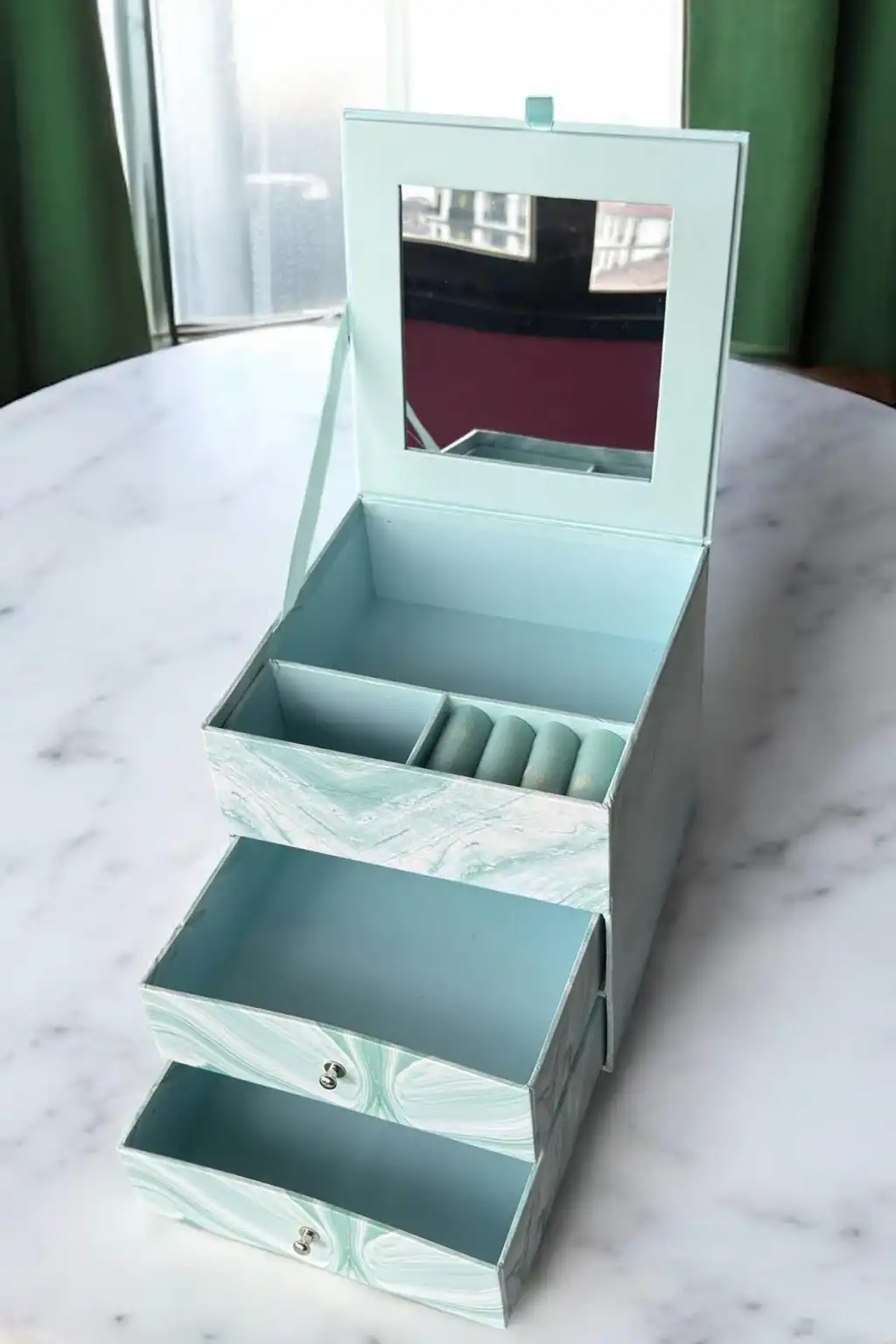 Mavi Renk Ayna Ve Çekmece Detaylı Takı Organizeri