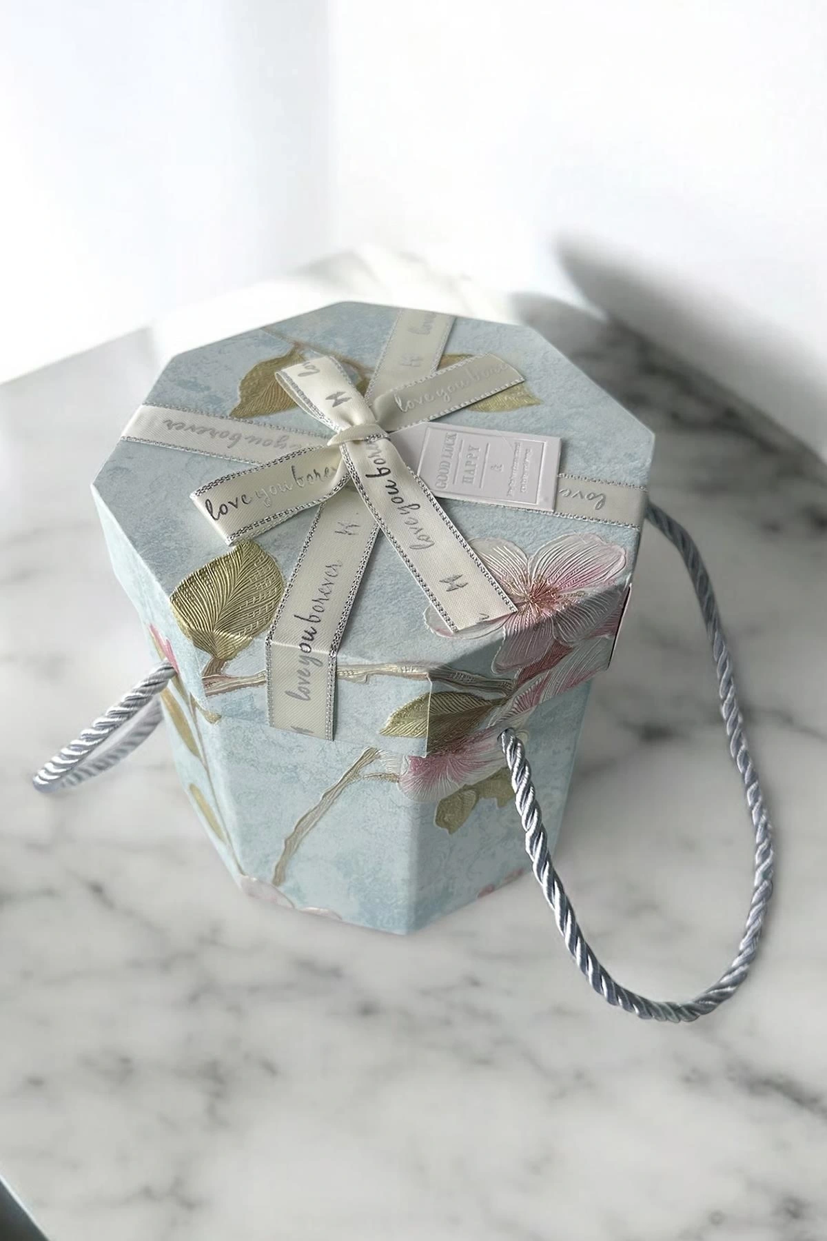 Mavi Renk Çiçek Figürlü Kurdele Detaylı Hediye Kutusu