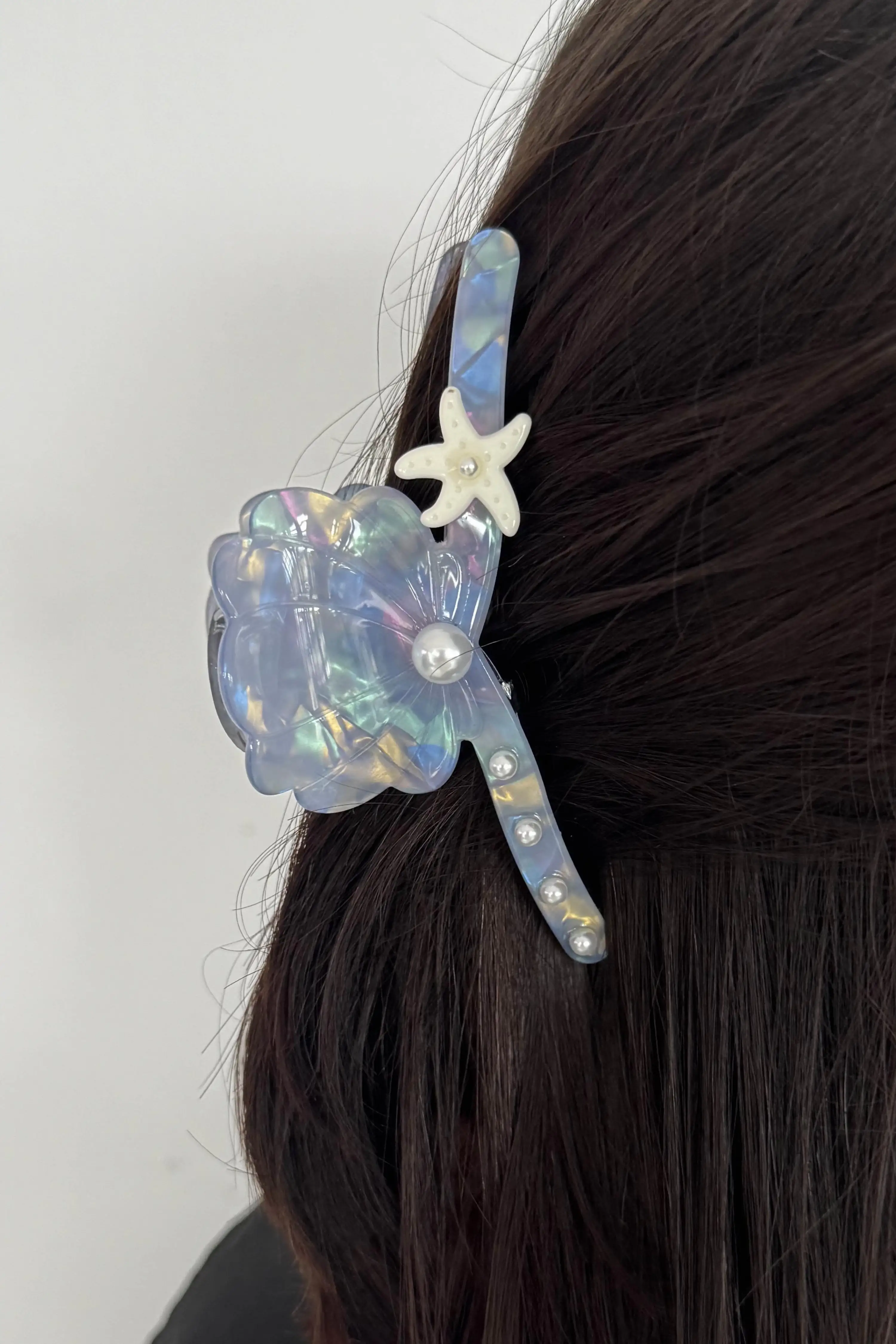 Krem Renk Deniz Yıldızı Figürlü İnci Detaylı Metal Mandal Toka