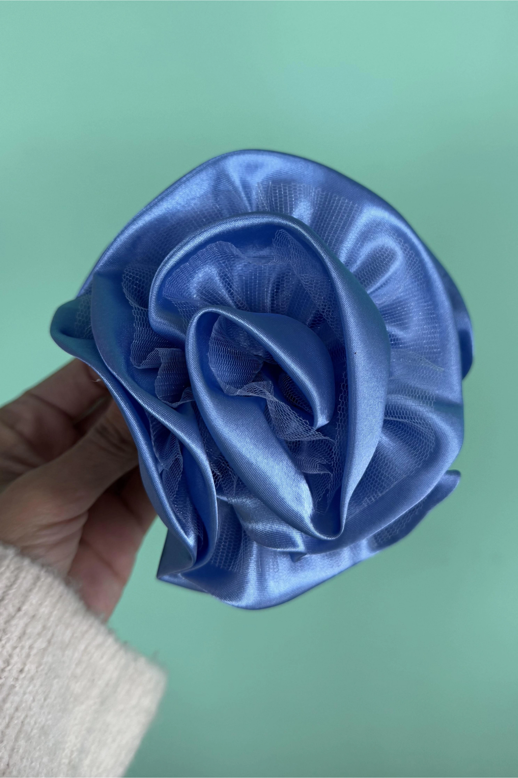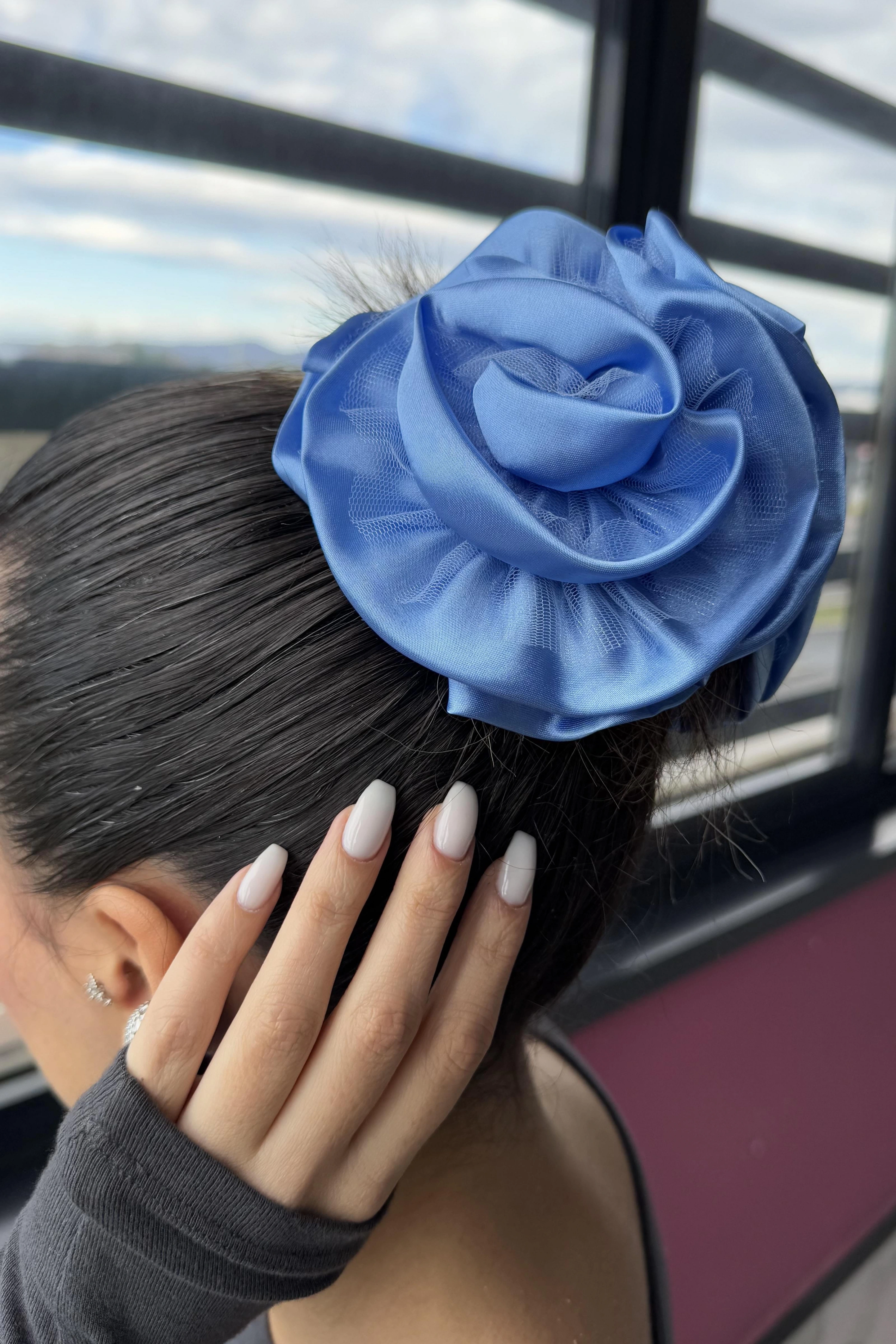 Mavi Renk Gül Detaylı Mandal Toka