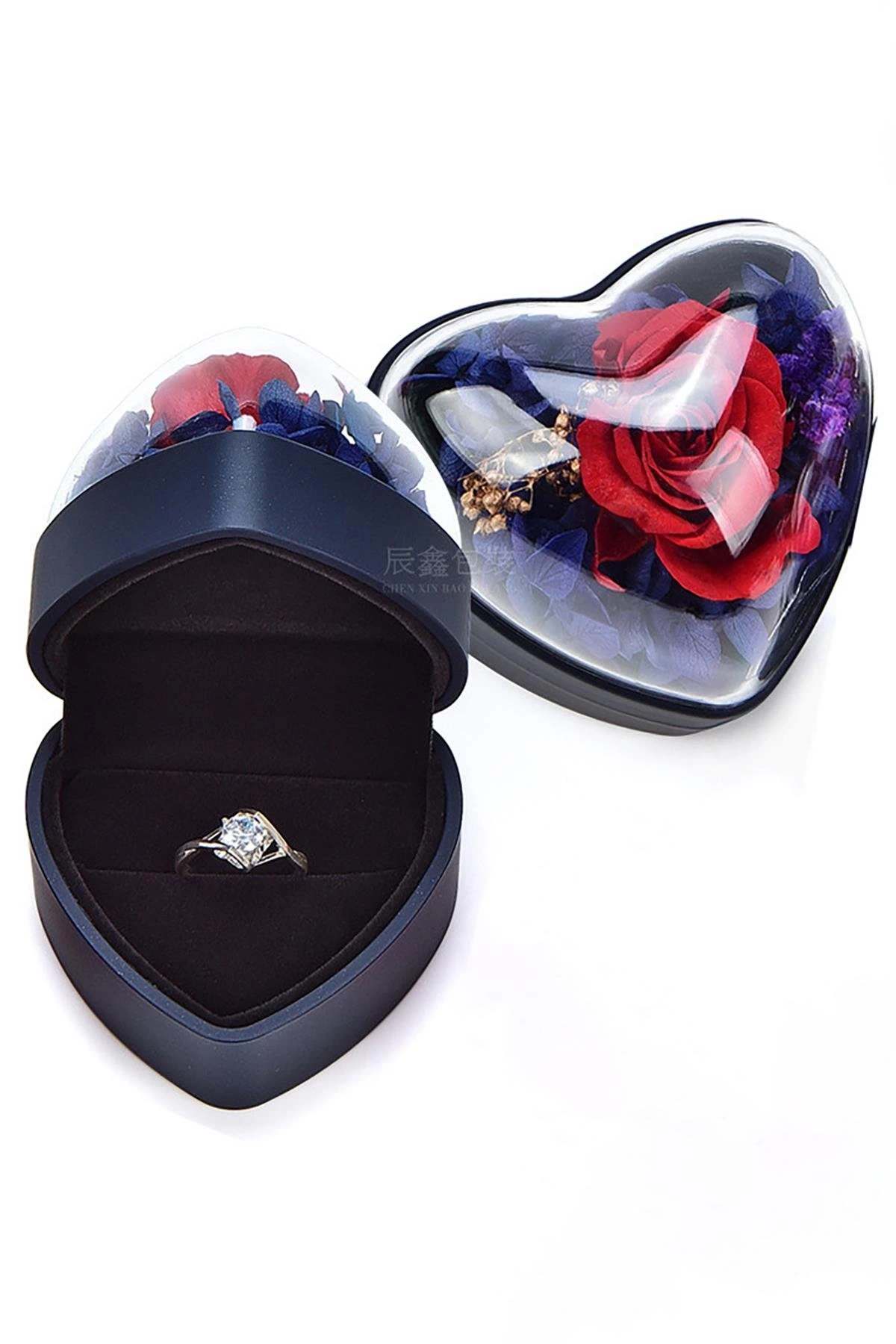 Mavi Renk Gül Detaylı Yüzük Kolye Kutusu