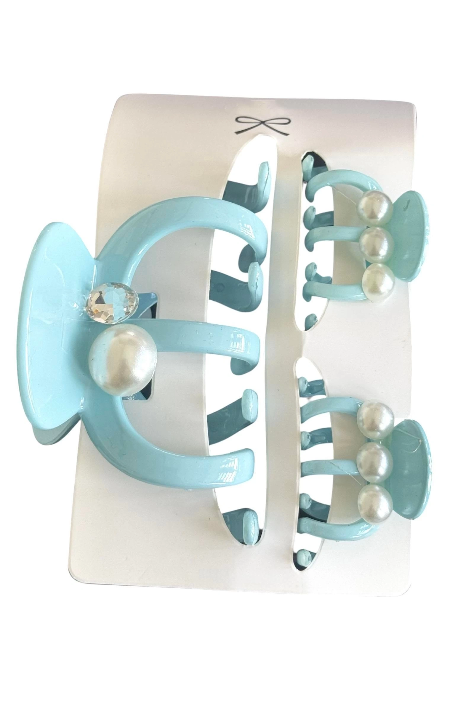 Mavi Renk İnci Detaylı 3'lü Kemik Mandal Toka Set