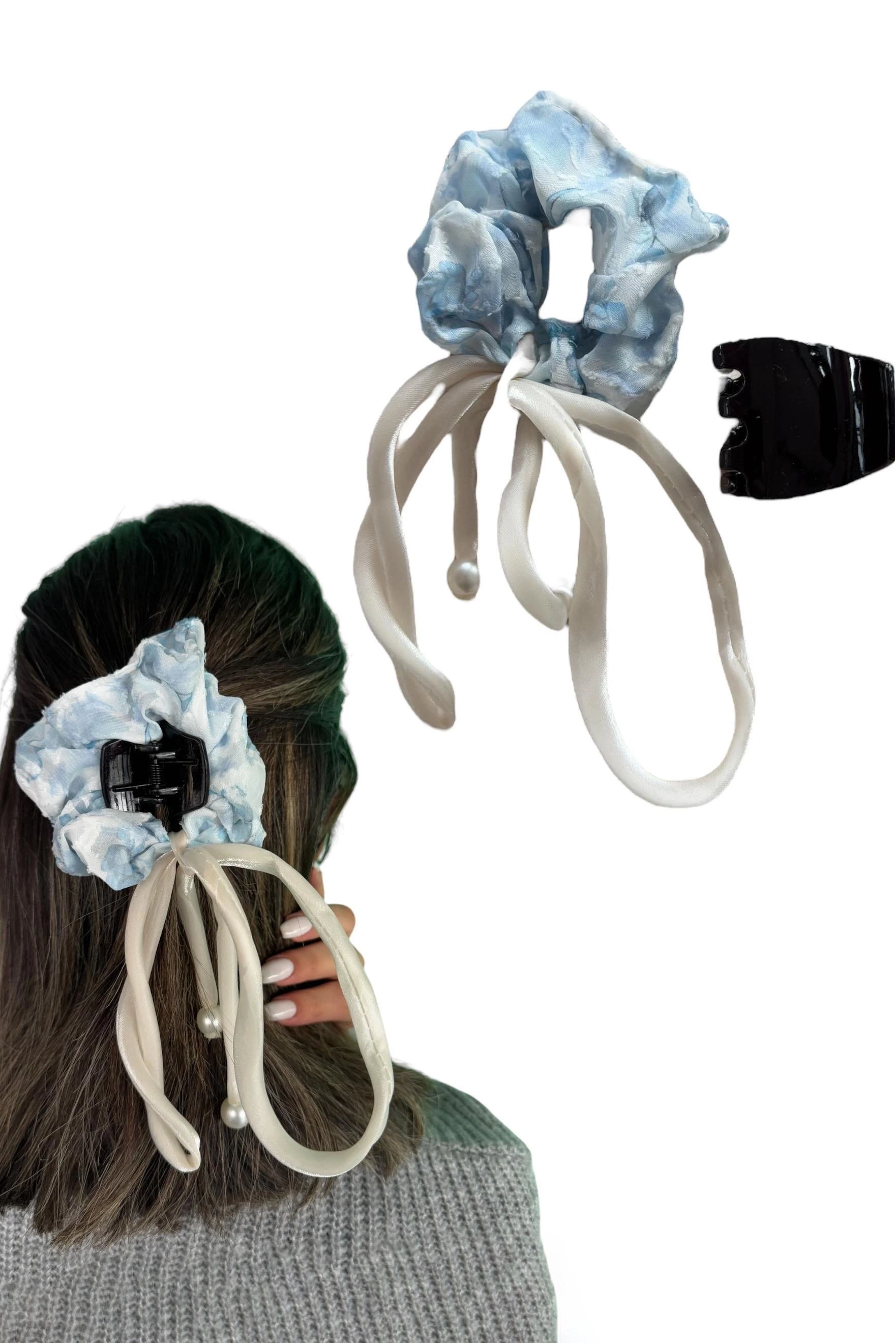 Mavi Renk İnci Detaylı Mandal/Simit Toka