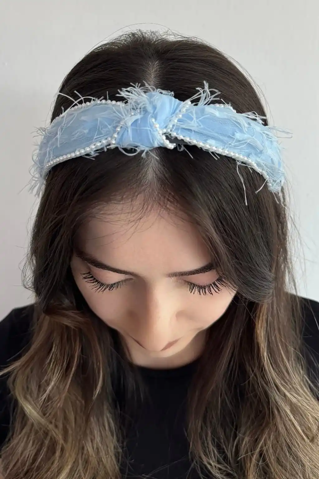 Kahverengi Kurdele Detaylı İnci Sallantılı Peluş Taç