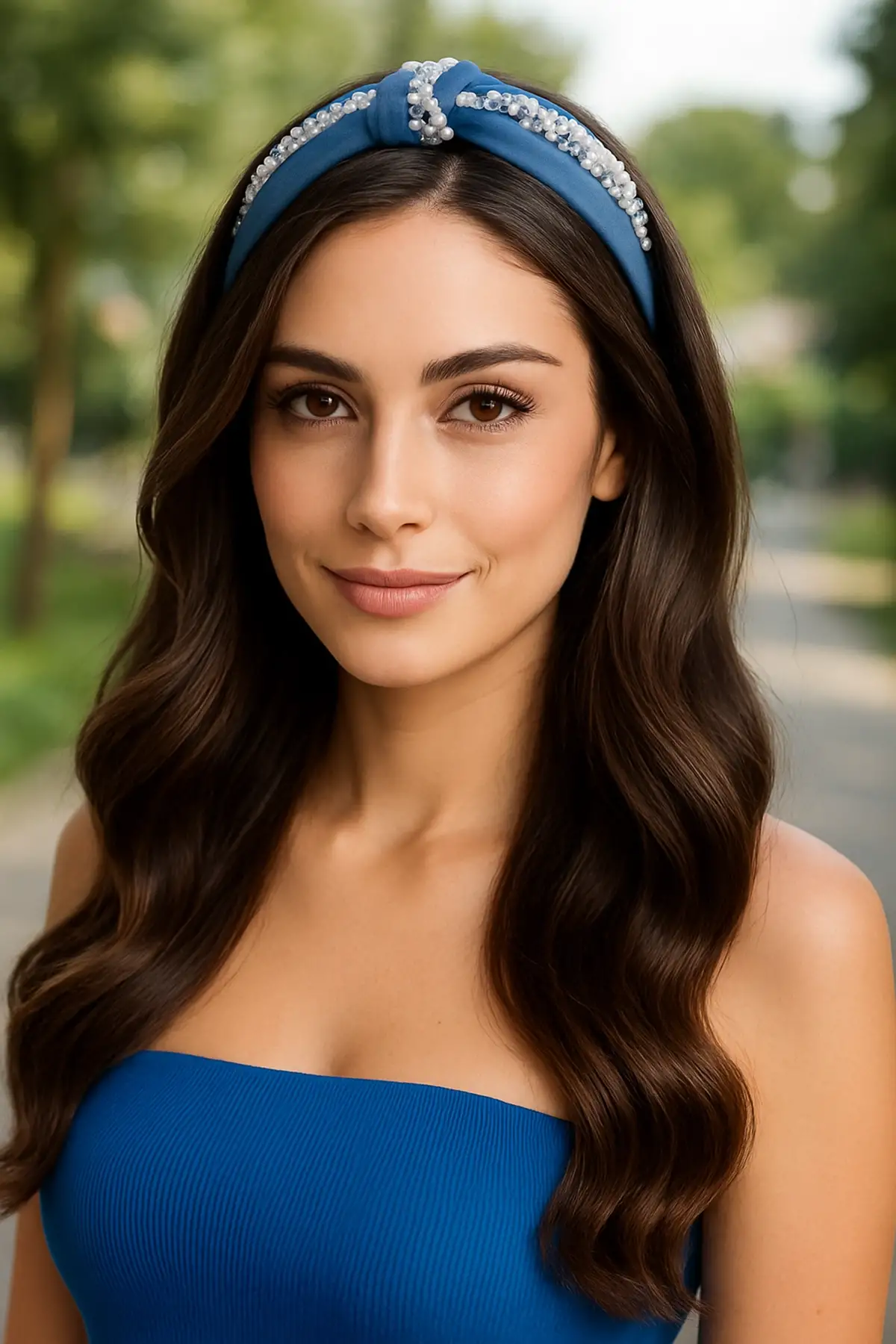 Mavi Renk İnci Ve Düğüm Detaylı Taç
