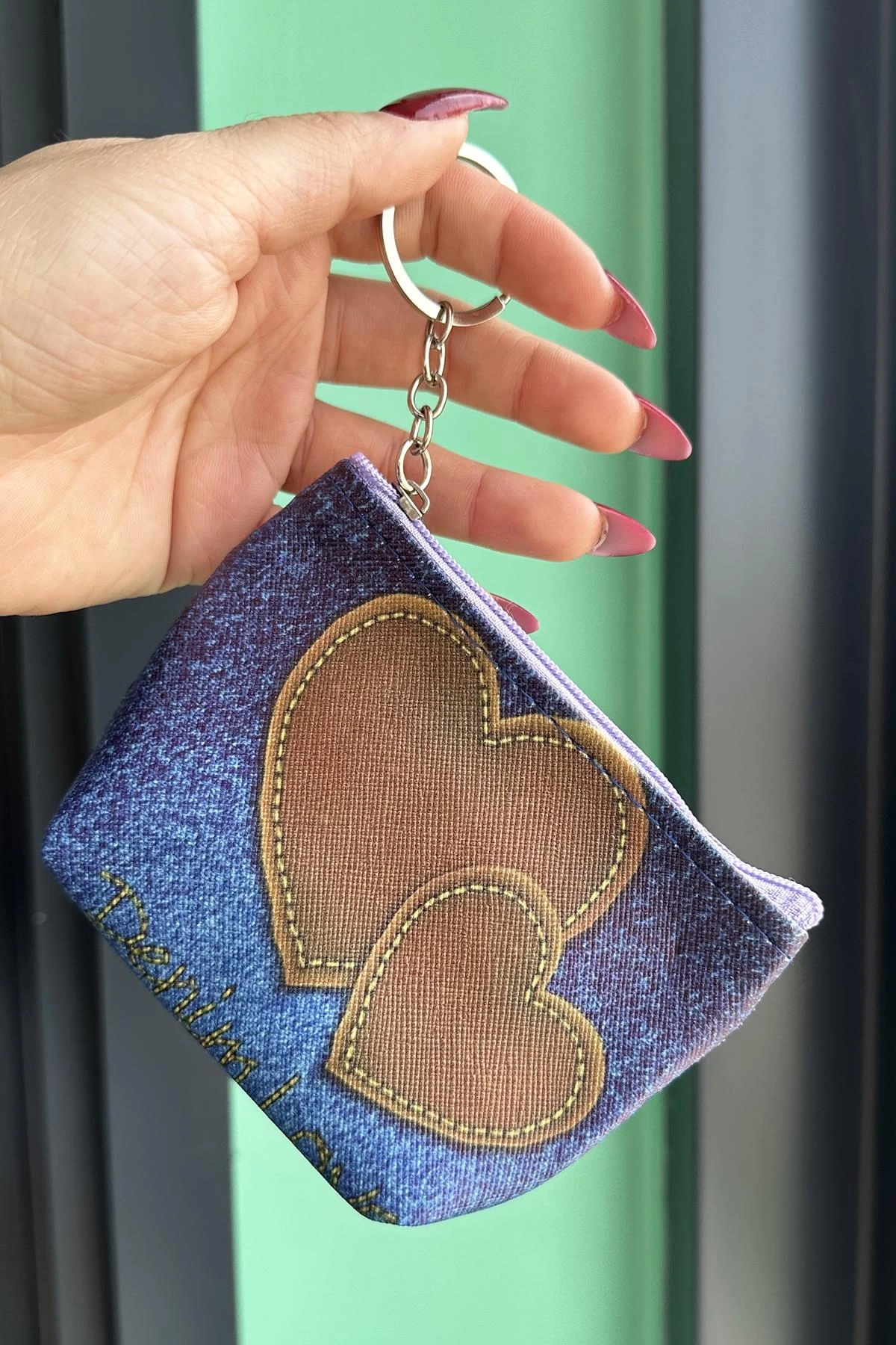 Mavi Renk Kalp Figürlü Cüzdan Anahtarlık