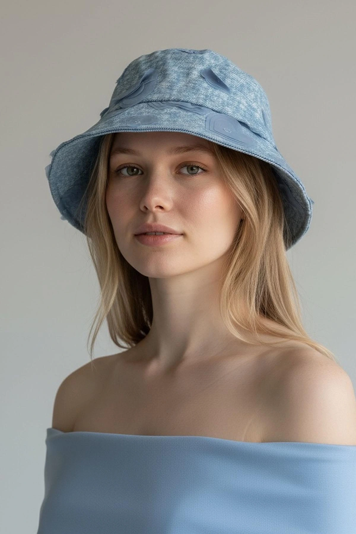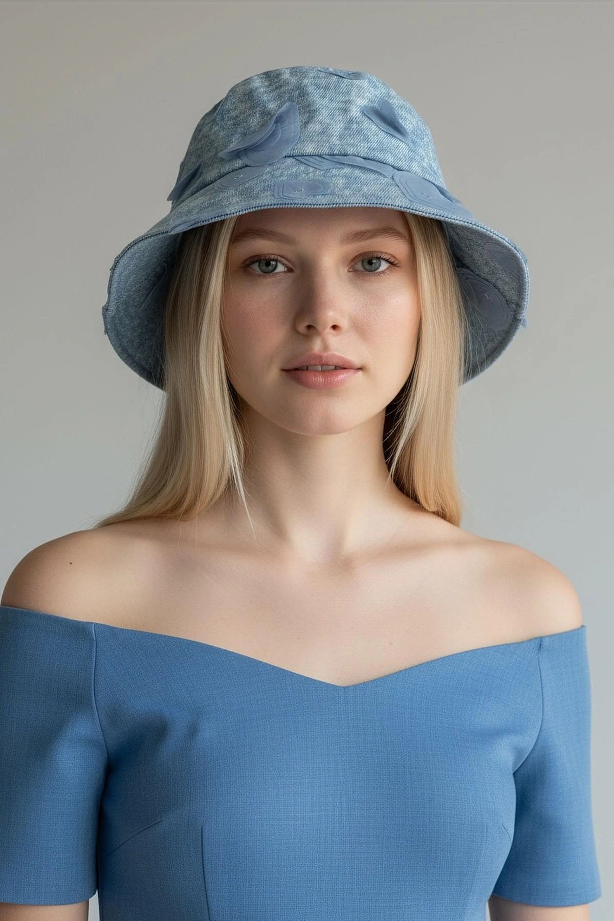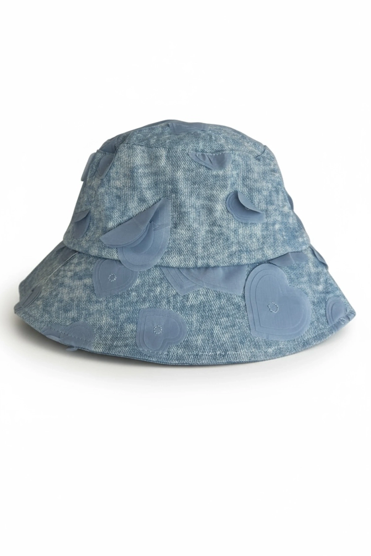 Mavi Renk Kalp Figürlü Kot Tasarım Şapka