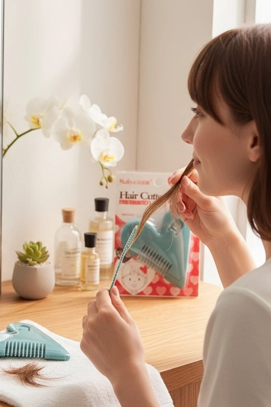 Mavi Renk Kalp Figürlü Saç Kırık Alma Aparatı