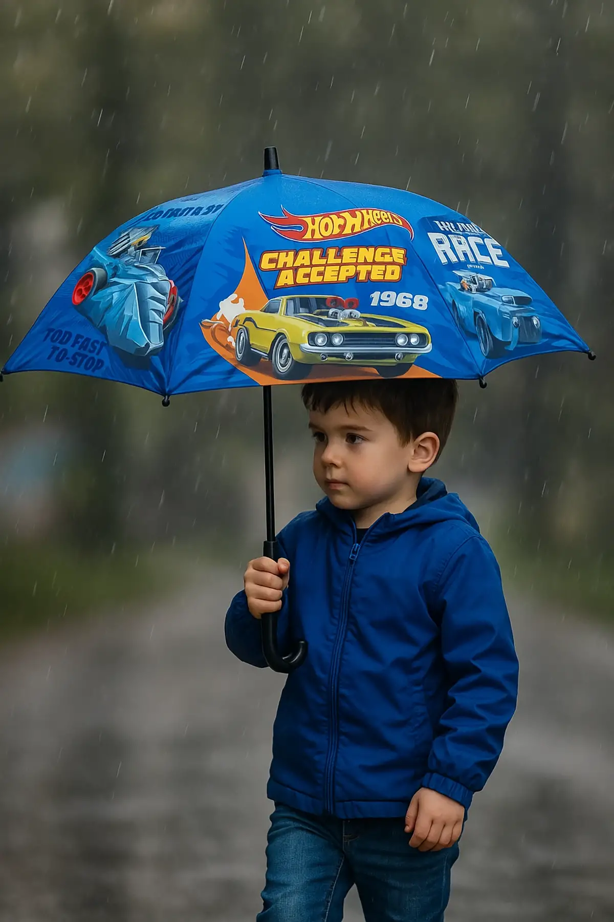 Mavi Renk Karışık Figürlü Kılıflı Çocuk Şemsiye