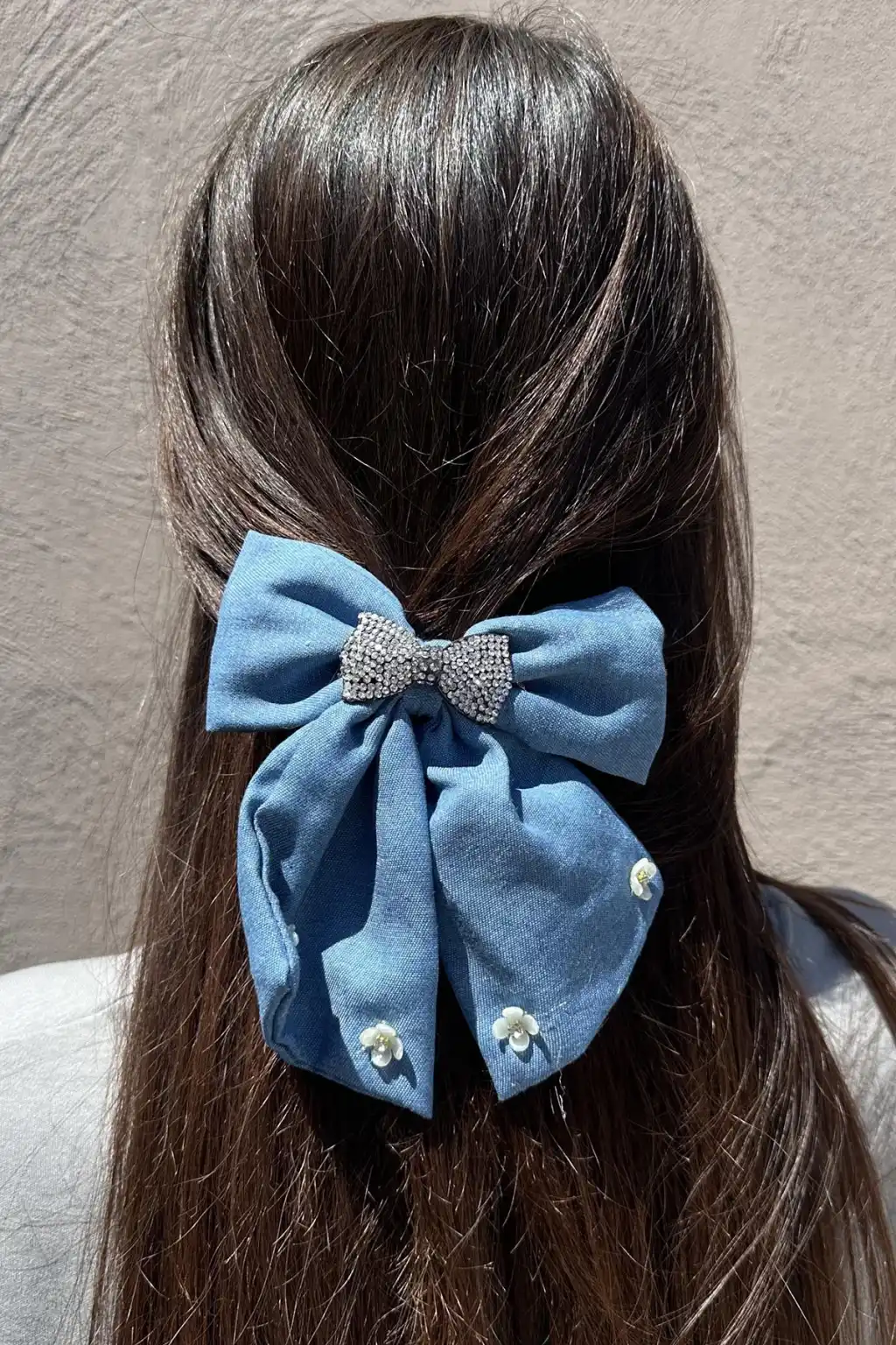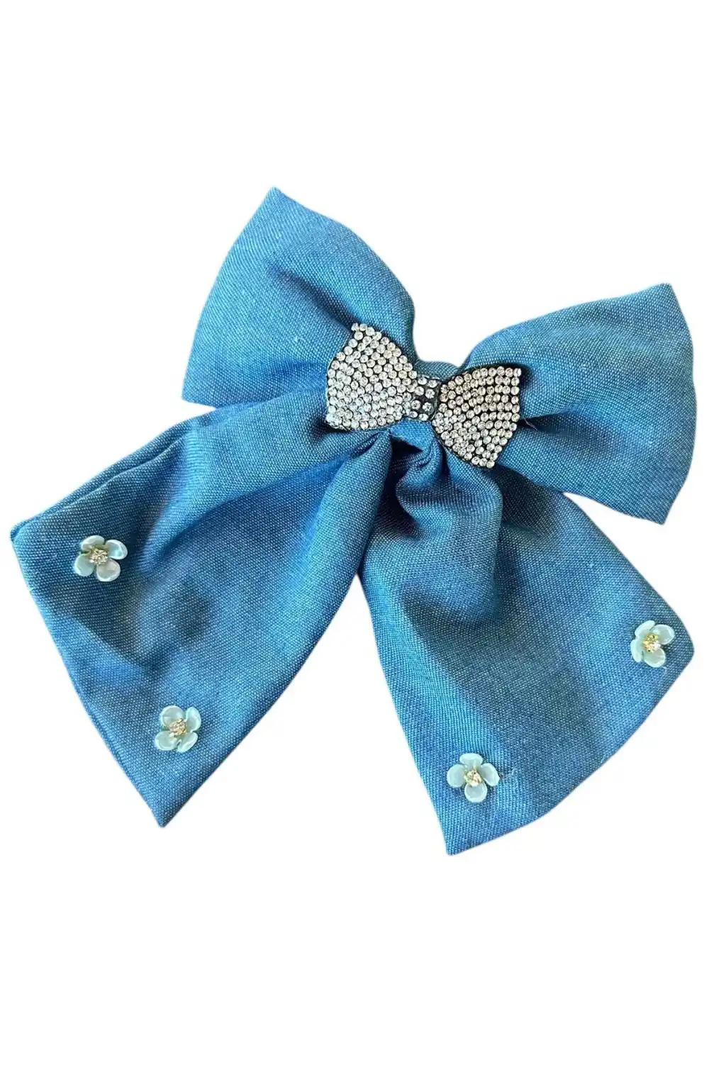 Mavi Renk Kurdele Figürlü Çiçek Detaylı Otomat Toka