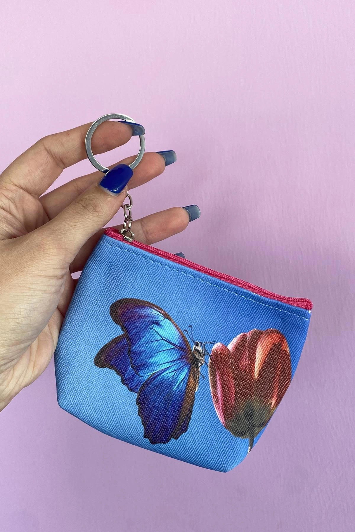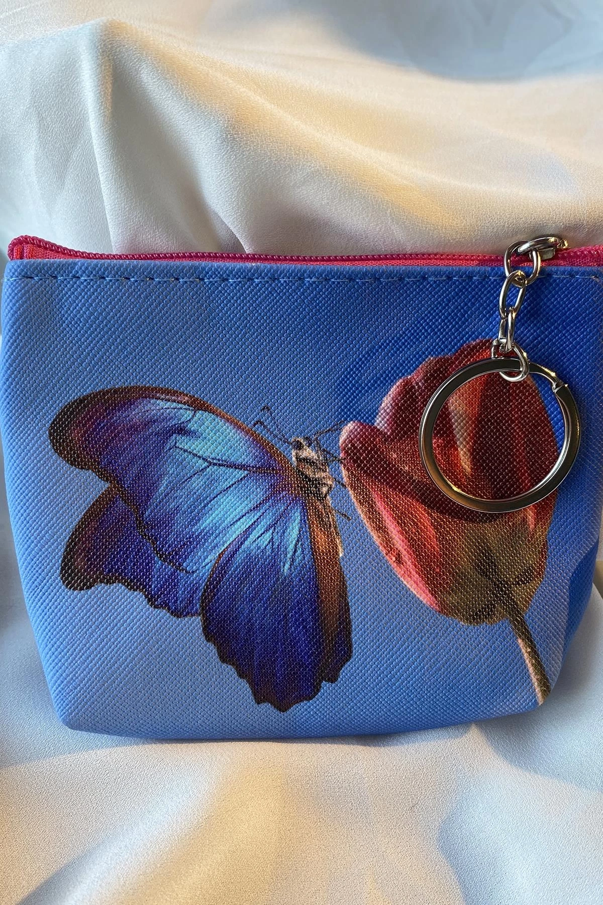 Mavi Renk Kelebek Figürlü Cüzdan/ Anahtarlık