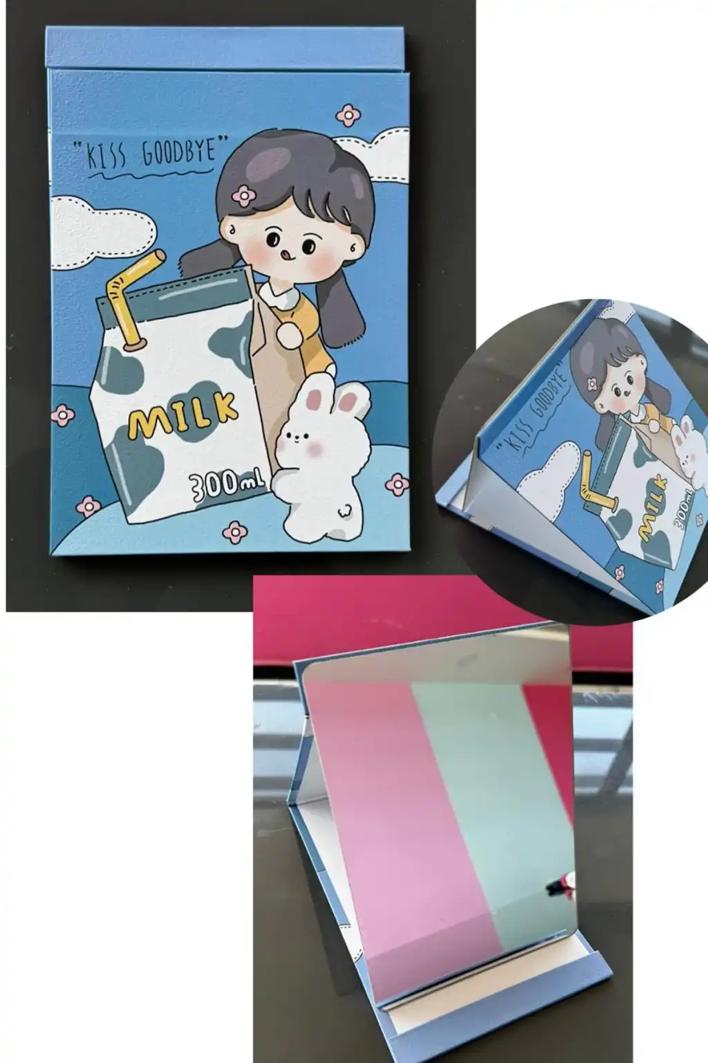 Mavi Renk Kız Figürlü Katlanabilir Masa Aynası