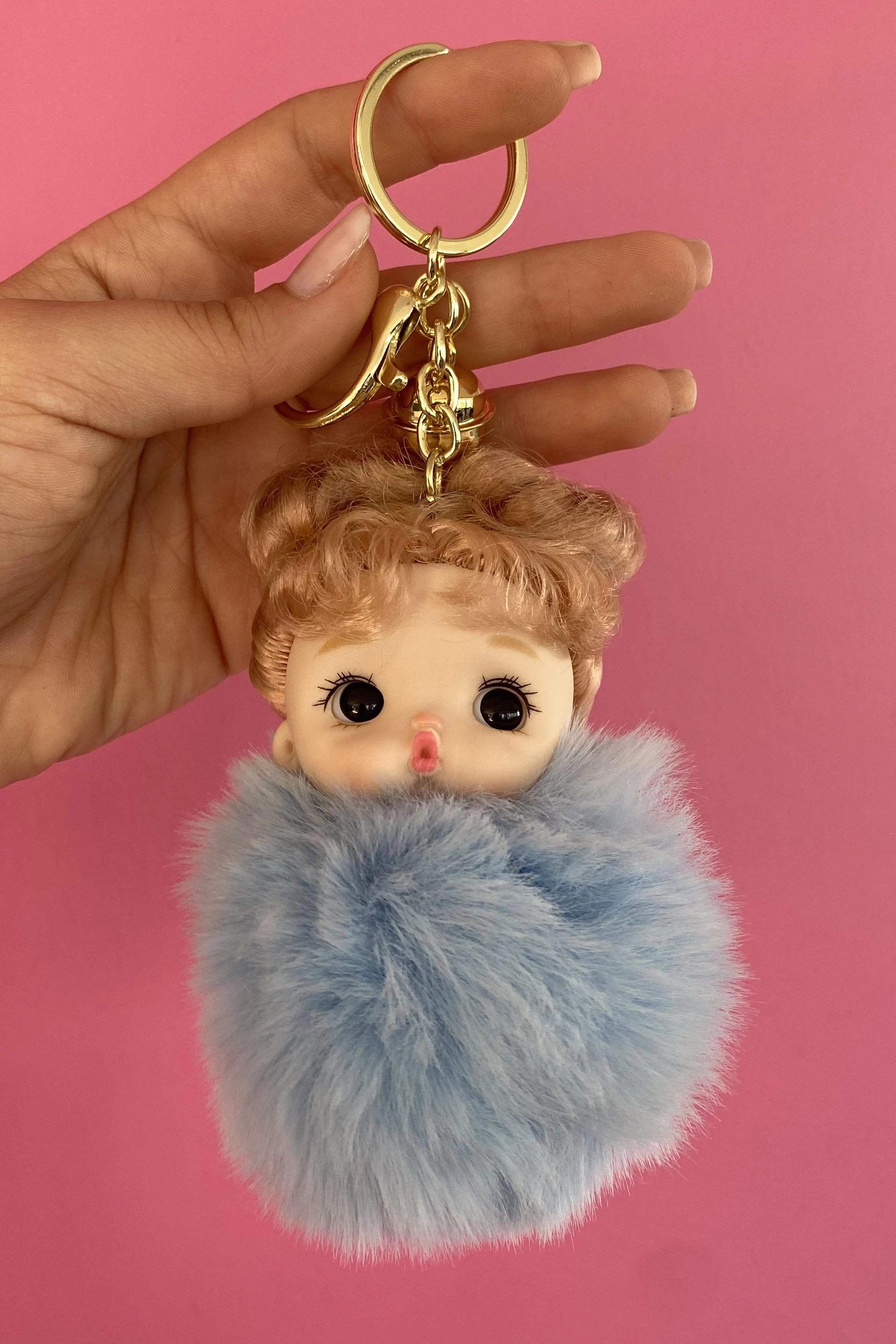 Mavi Renk Kız Figürlü Peluş Anahtarlık