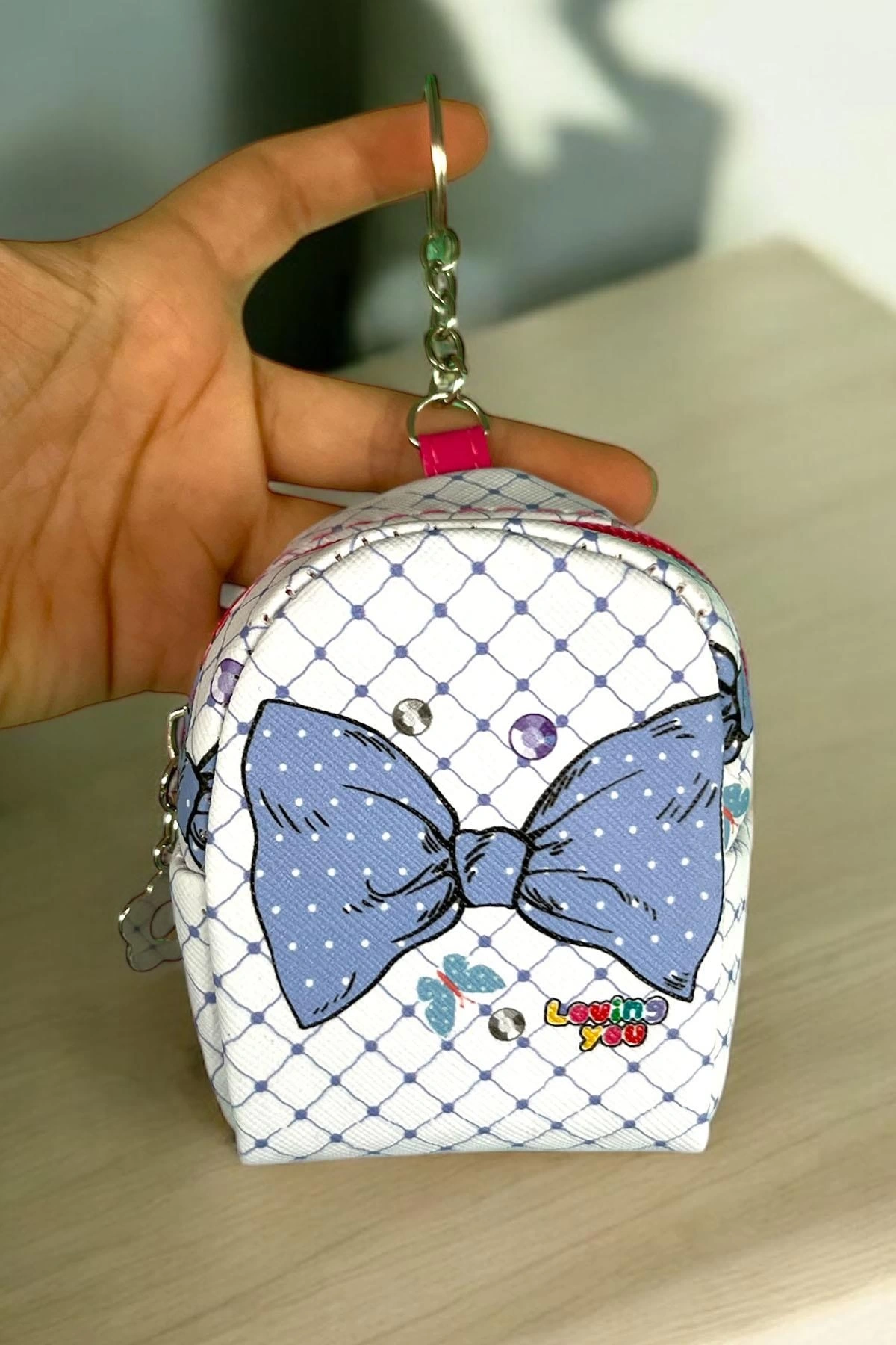 Mavi Renk Kurdele Figürlü Anahtarlık /Cüzdan