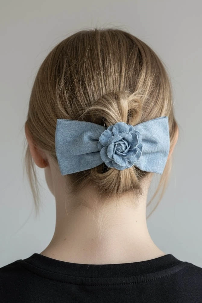 Mavi Renk Kurdele Figürlü Çiçek Detaylı Otomat Toka