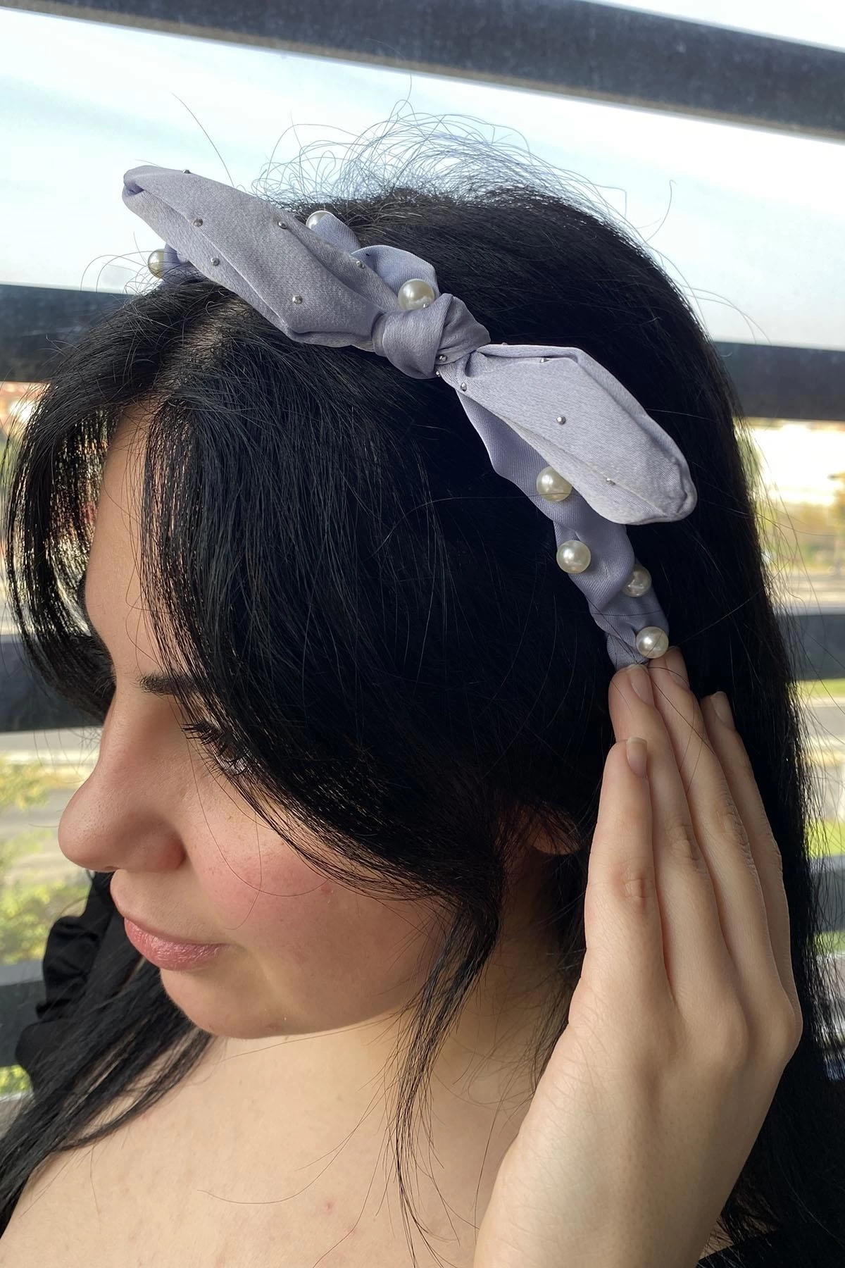 Mavi Renk Kurdele Figürlü İnci Detaylı Taç
